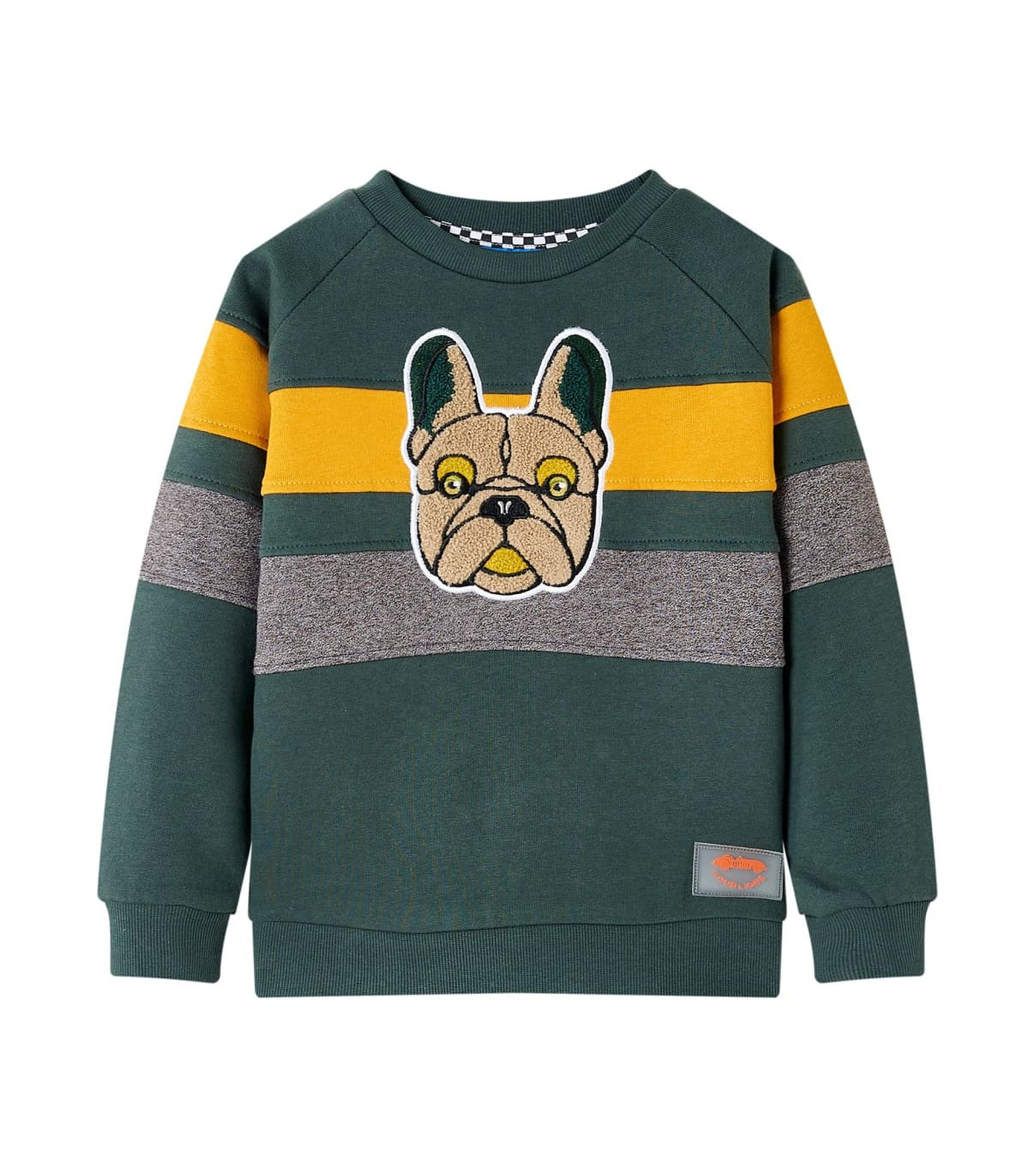 Our children's clothing line is all about affordable, high-quality, and durable everyday wear for kids aged 1.5 to 10. Our range includes jackets, sweaters, shirts, and many more, with a variety in style, size, and colour. Following the high-quality standard in the market, we are using high-grade materials and advanced manufacturing techniques. This kids' sweatshirt has raglan sleeves, a round neck, and rib-knit edges at the cuffs, neckline, and bottom. This sweatshirt features a bulldog embroidery on the front. The kids' top is made of 92% cotton and 8% polyester for softness and comfort. The soft fleece lining provides extra warmth for the children's sweatshirt. Good to know: The size chart in the picture provides measurements for kids aged 1.5 to 10, covering the height, chest, waist, and hip. You can easily find the right fit for your child.