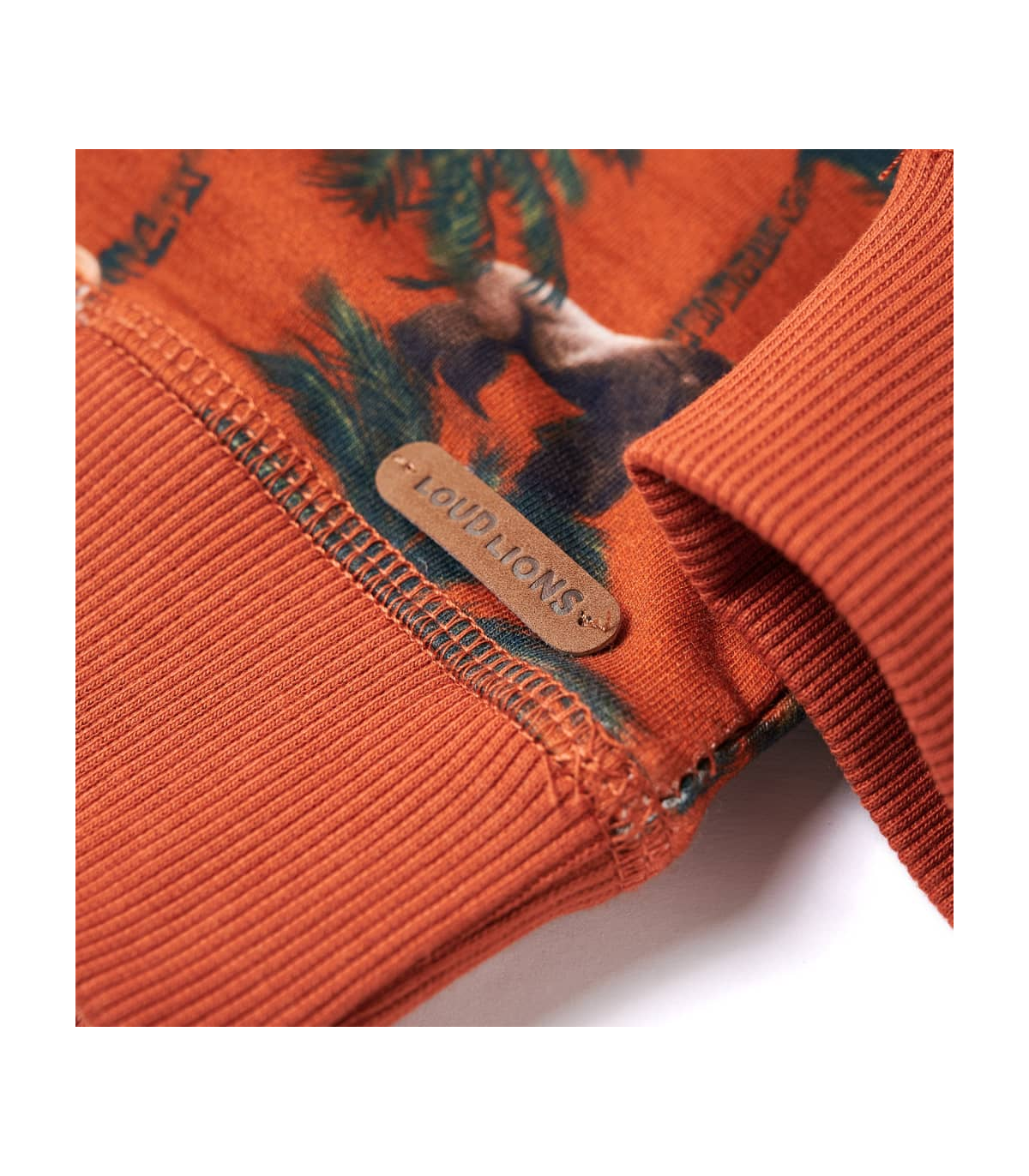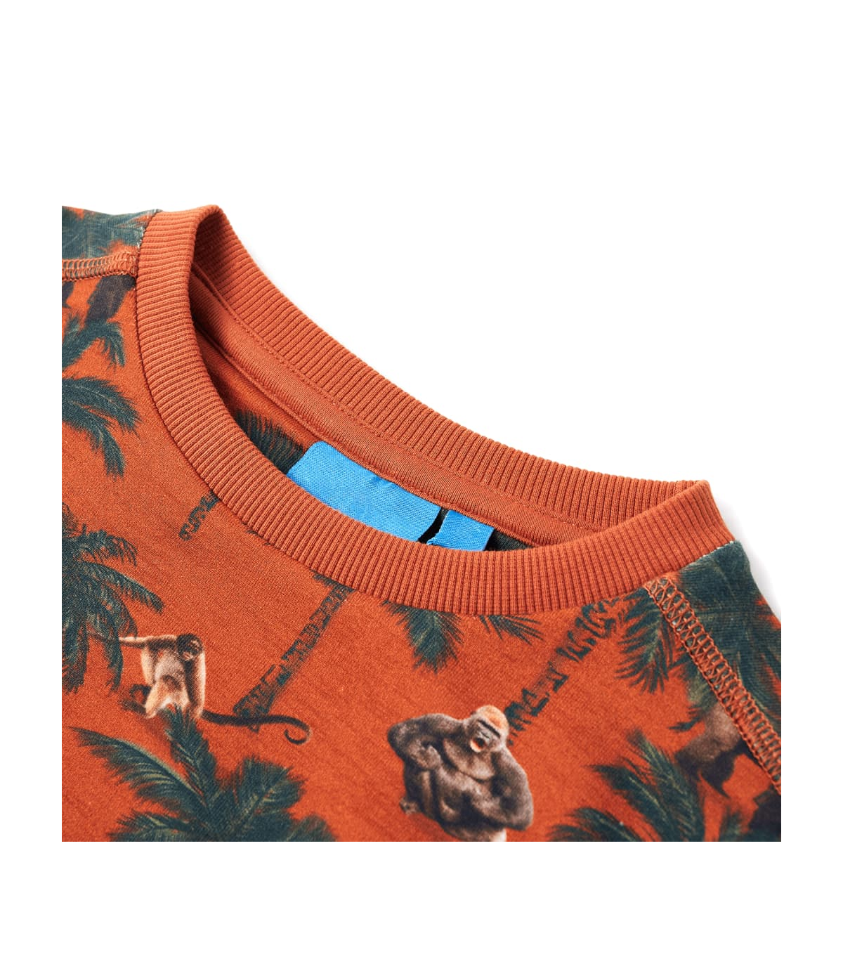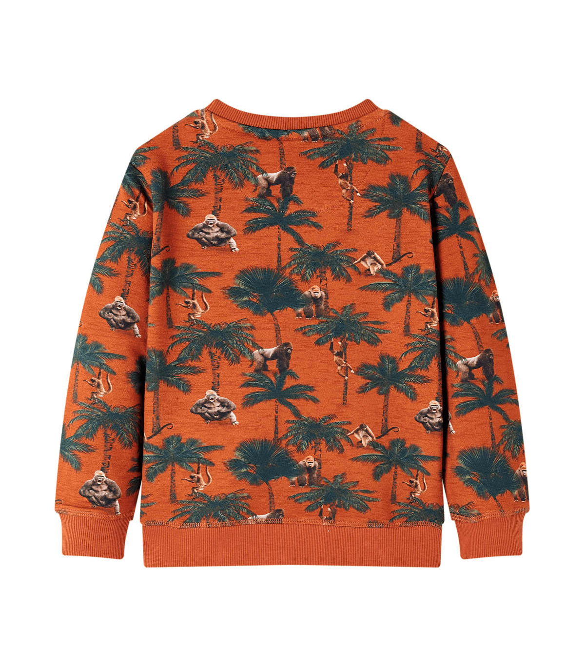 Our children's clothing line is all about affordable, high-quality, and durable everyday wear for kids aged 1.5 to 10. Our range includes jackets, sweaters, shirts, and many more, with a variety in style, size, and colour. Following the high-quality standard in the market, we are using high-grade materials and advanced manufacturing techniques. This kids' sweatshirt has long sleeves, a round neck, and rib-knit edges at the cuffs, neckline, and bottom. This sweatshirt is printed with gorillas, monkeys and palm trees all over. The kids' top is made of 95% cotton and 5% polyester for softness and comfort. Good to know: The size chart in the picture provides measurements for kids aged 1.5 to 10, covering the height, chest, waist, and hip. You can easily find the right fit for your child.