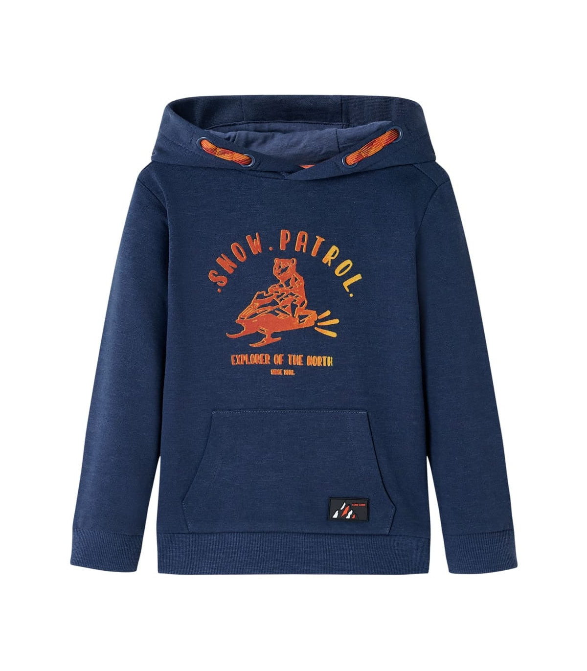 Our children's clothing line is all about affordable, high-quality, and durable everyday wear for kids aged 1,5 to 10. Our range includes jackets, sweaters, shirts, and many more, with a variety in style, size, and colour. Following the high-quality standard in the market, we are using high-grade materials and advanced manufacturing techniques. This kids' hooded sweatshirt has long sleeves, a kangaroo pocket, ribbed cuffs and hem. This hoodie is printed with a snowmobile pattern and the words "SNOW PATROL". The children's hoodie is made of 92% cotton and 8% polyester for softness and comfort. Good to know: The size chart in the picture provides measurements for kids aged 1,5 to 10, covering the height, chest, waist, and hip. You can easily find the right fit for your child.