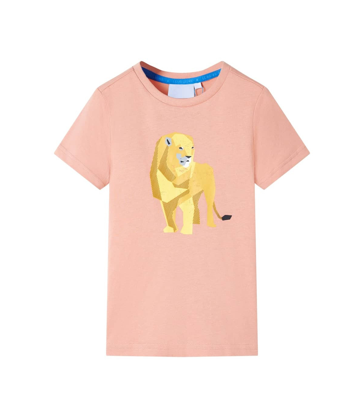 Our children's clothing line is all about affordable, high-quality, and durable everyday wear for kids aged 1,5 to 10. Our range includes jackets, sweaters, shirts, and many more, with a variety in style, size, and colour. Following the high-quality standard in the market, we are using high-grade materials and advanced manufacturing techniques. This kids' T-shirt has short sleeves, a round neckline, and a straight model. The children's T-shirt is printed with a big lion. The kids' short sleeved T-shirt is made of 100% cotton for a soft and comfortable touch. Good to know: The size chart in the picture provides measurements for kids aged 1,5 to 10, covering the height, chest, waist, and hip. You can easily find the right fit for your child.