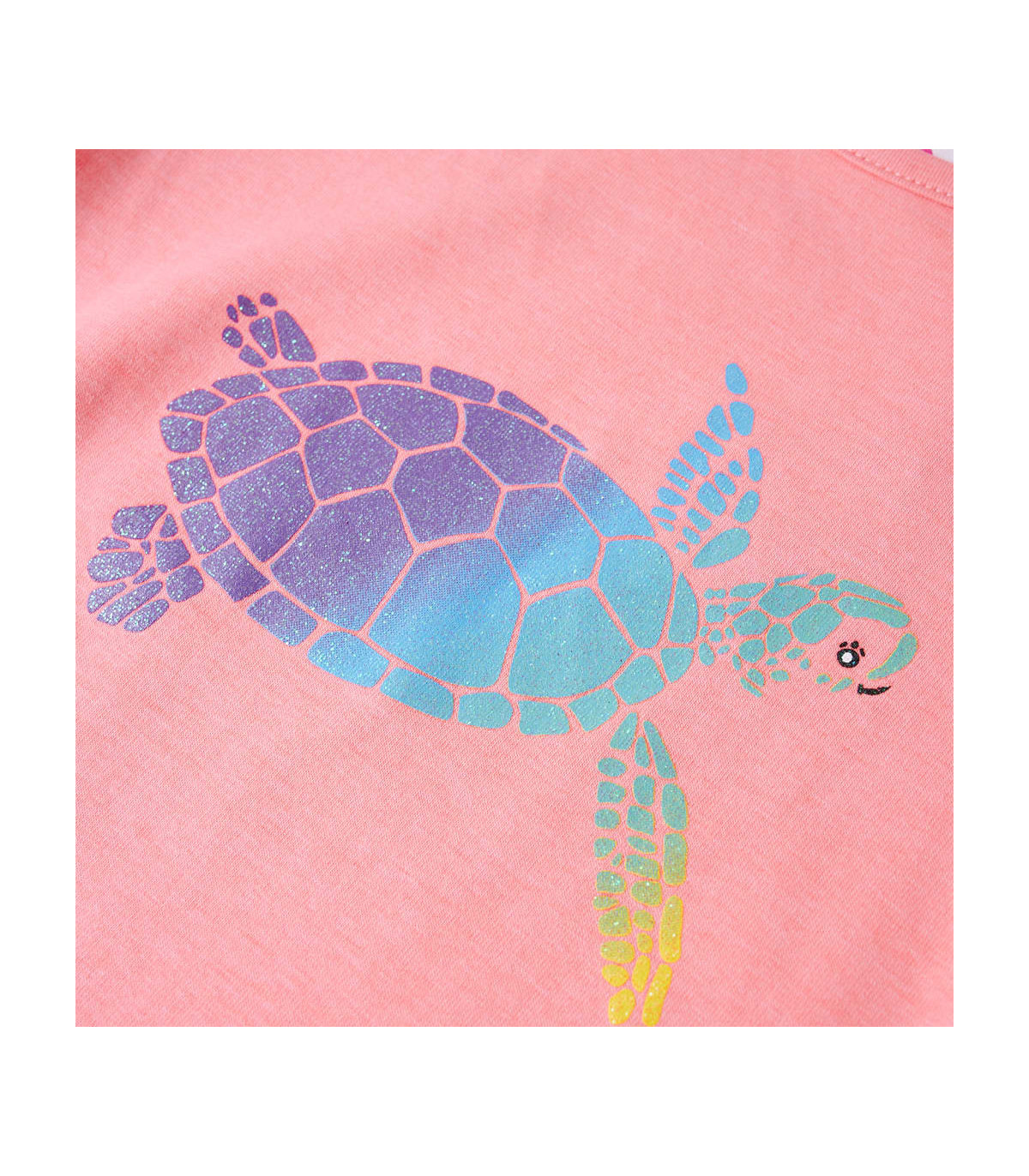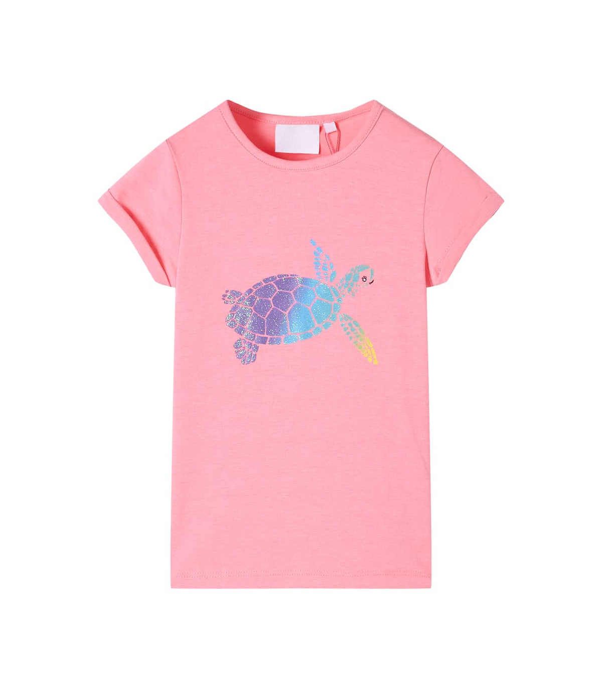 Our children's clothing line is all about affordable, high-quality, and durable everyday wear for kids aged 1.5 to 10. Our range includes jackets, sweaters, shirts, and many more, with a variety in style, size, and colour. Following the high-quality standard in the market, we are using high-grade materials and advanced manufacturing techniques. This kids' T-shirt has short sleeves, a round neckline, and a straight model. This lilac T-shirt features a sparkling turtle on the chest. The children's short sleeve T-shirt is made of 95% cotton and 5% elastane for comfort and breathability. Good to know: The size chart in the picture provides measurements for kids aged 1.5 to 10, covering the height, chest, waist, and hip. You can easily find the right fit for your child.