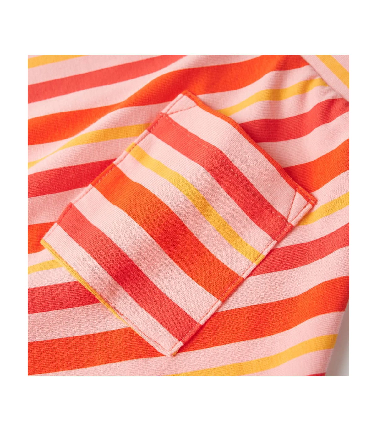 Our children's clothing line is all about affordable, high-quality, and durable everyday wear for kids aged 1.5 to 10. Our range includes jackets, sweaters, shirts, and many more, with a variety in style, size, and colour. Following the high-quality standard in the market, we are using high-grade materials and advanced manufacturing techniques. This kids' skirt has an A-line design, two patch pockets and an elastic waistband. This children's skirt is covered with stripes all over. The kids' short skirt is made from soft material including 95% cotton and 5% elastane for comfort and breathability. Good to know: This size chart in the picture provides measurements for kids aged 1.5 to 10, covering the height, chest, waist, and hip. You can easily find the right fit for your child.