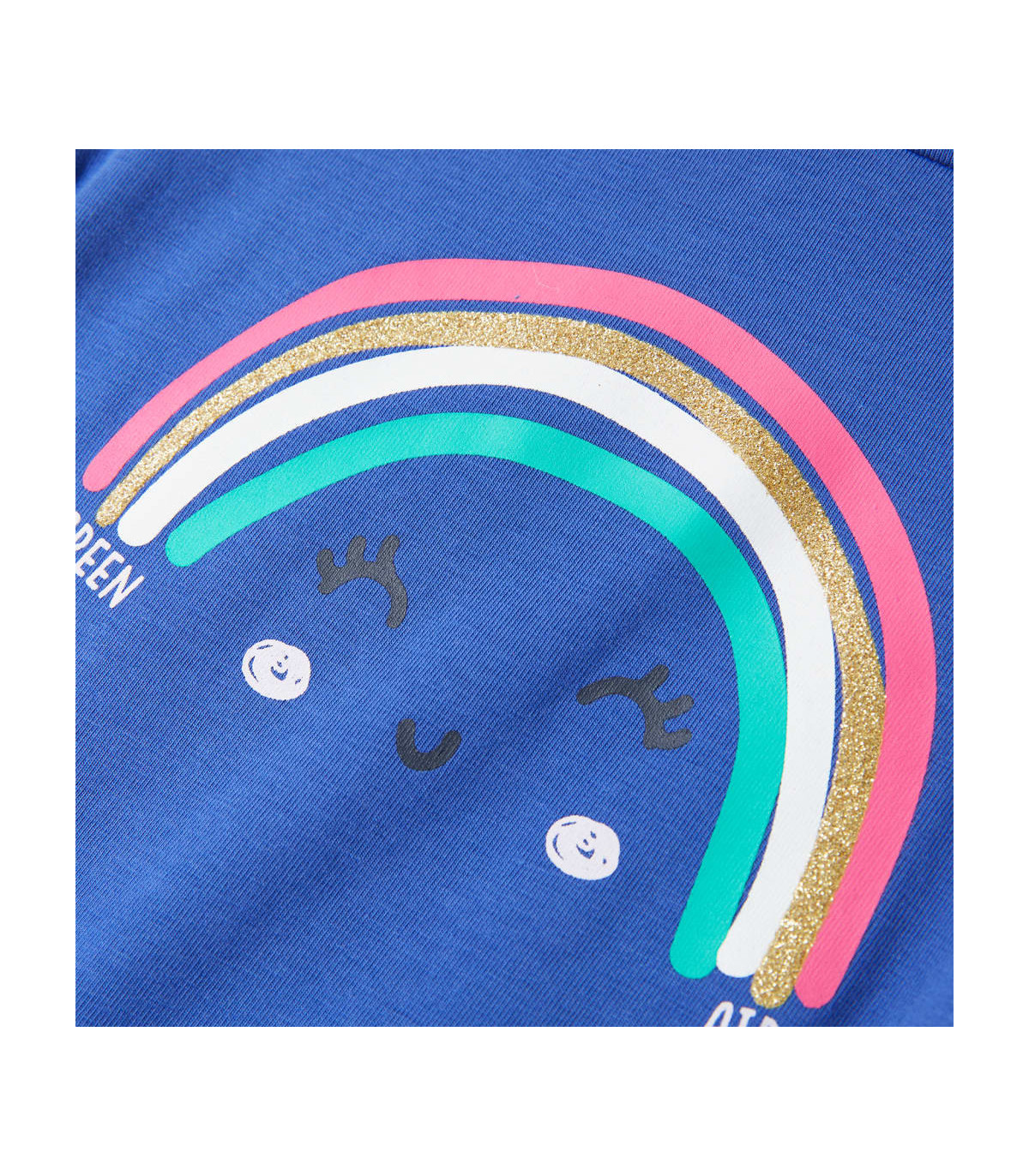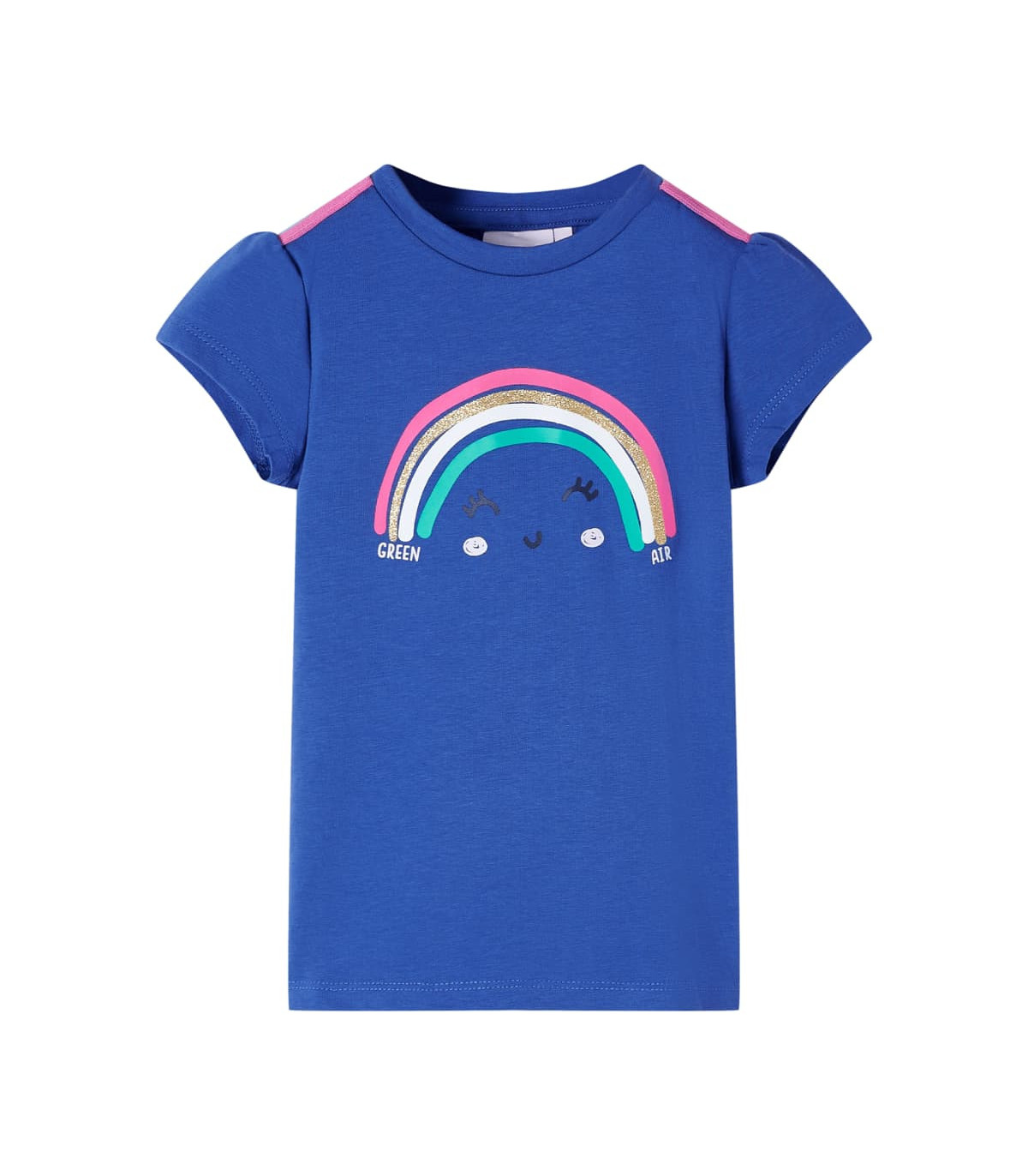 Our children's clothing line is all about affordable, high-quality, and durable everyday wear for kids aged 1,5 to 10. Our range includes jackets, sweaters, shirts, and many more, with a variety in style, size, and colour. Following the high-quality standard in the market, we are using high-grade materials and advanced manufacturing techniques. This kids' T-shirt has short sleeves, a round neckline, and a straight model. This T-shirt features a lovely smiling rainbow cartoon print on the chest. The children's short sleeve T-shirt is made of 95% cotton and 5% elastane for comfort and breathability. Good to know: The size chart in the picture provides measurements for kids aged 1,5 to 10, covering the height, chest, waist, and hip. You can easily find the right fit for your child.