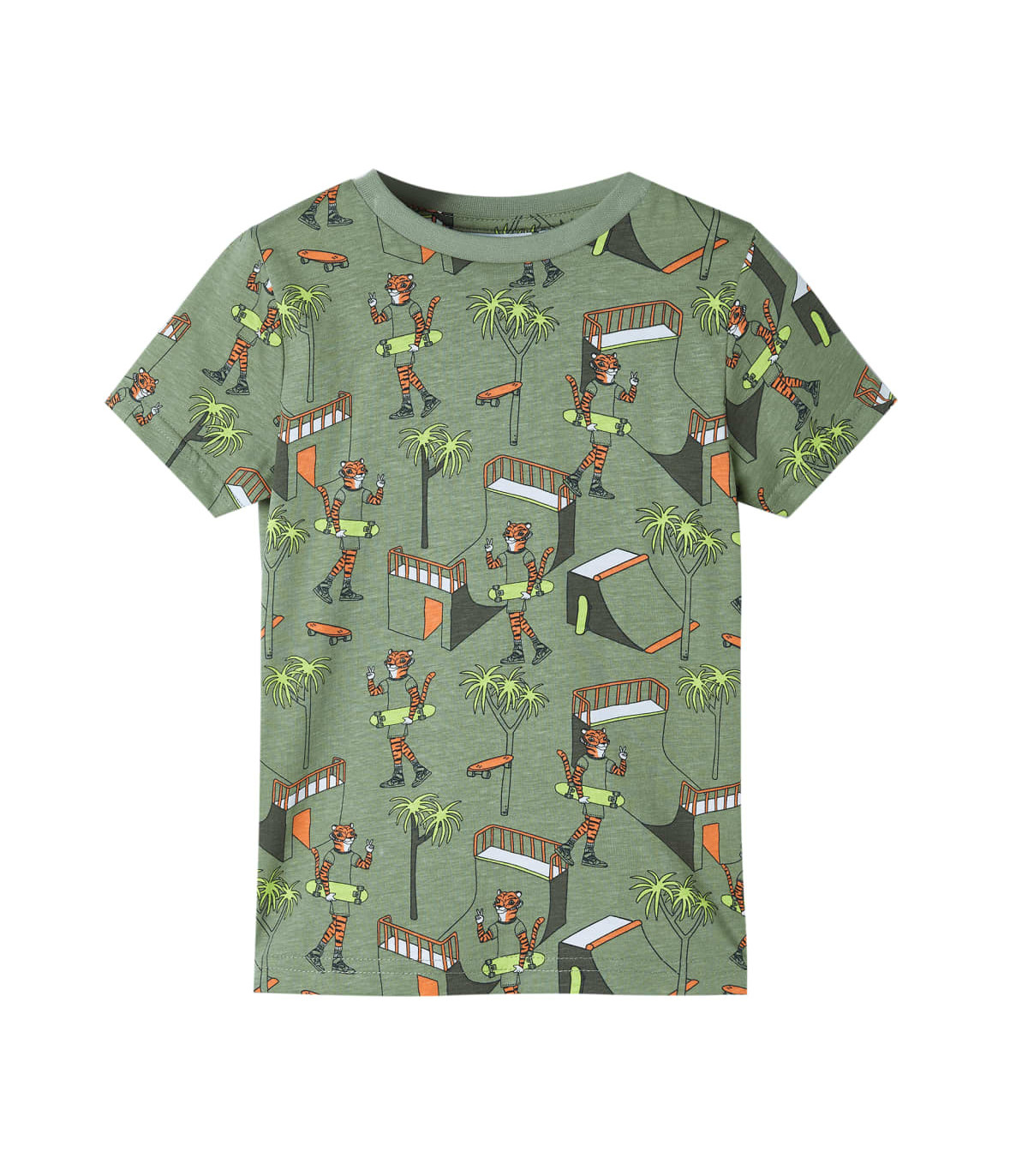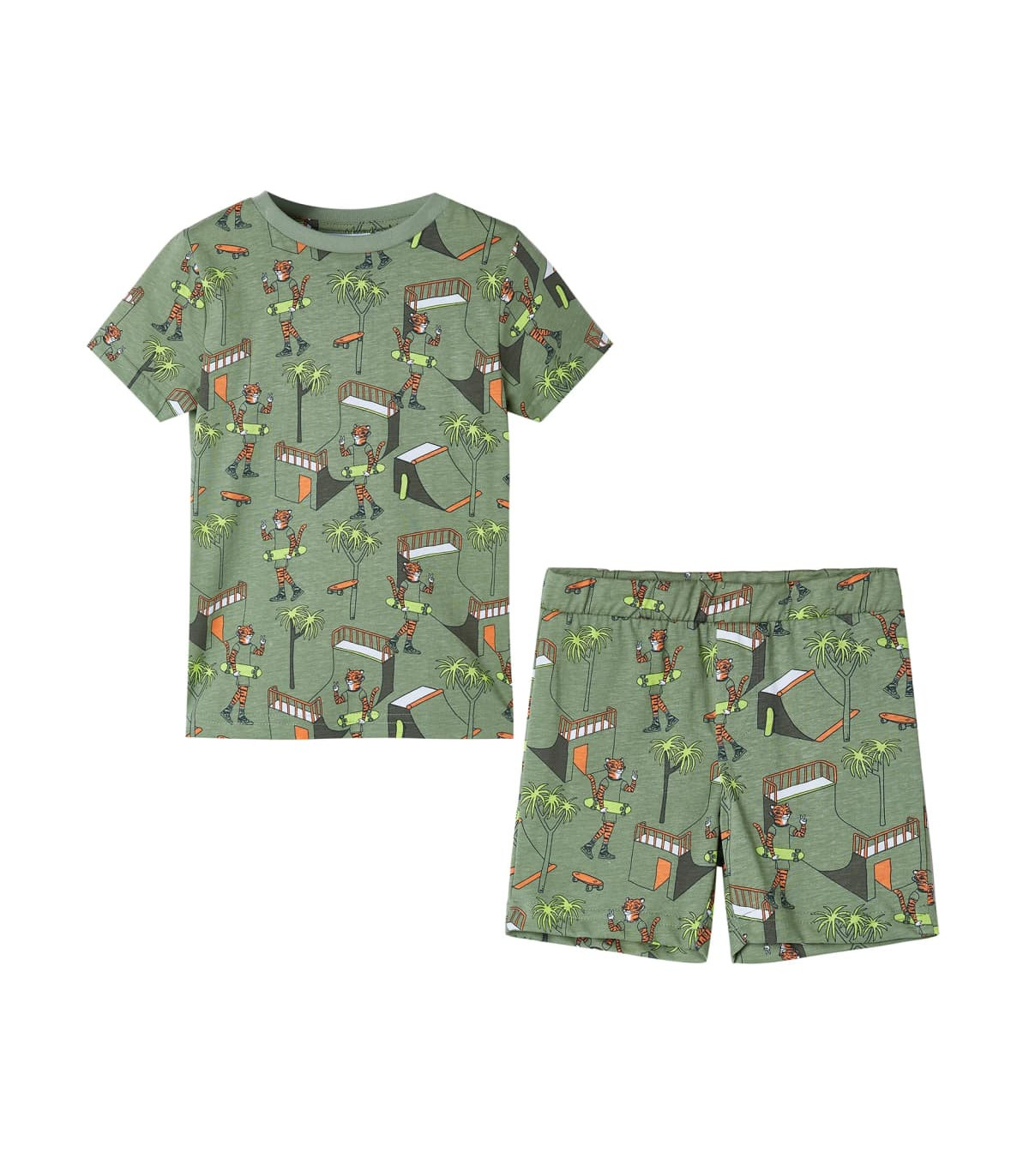Our children's clothing line is all about affordable, high-quality, and durable everyday wear for kids aged 1.5 to 10. Our range includes jackets, sweaters, shirts, and many more, with a variety in style, size, and colour. Following the high-quality standard in the market, we are using high-grade materials and advanced manufacturing techniques. This pair of kids' pyjamas with short sleeves has a round neckline, elasticated waistband, and a regular fit. This children's pyjamas feature an all-over tiger and tree print. The kids' loungewear is made from soft material with 100% cotton for extra comfort and breathability. Good to know: The size chart in the picture provides measurements for kids aged 1.5 to 10, covering the height, chest, waist, and hip. You can easily find the right fit for your child.