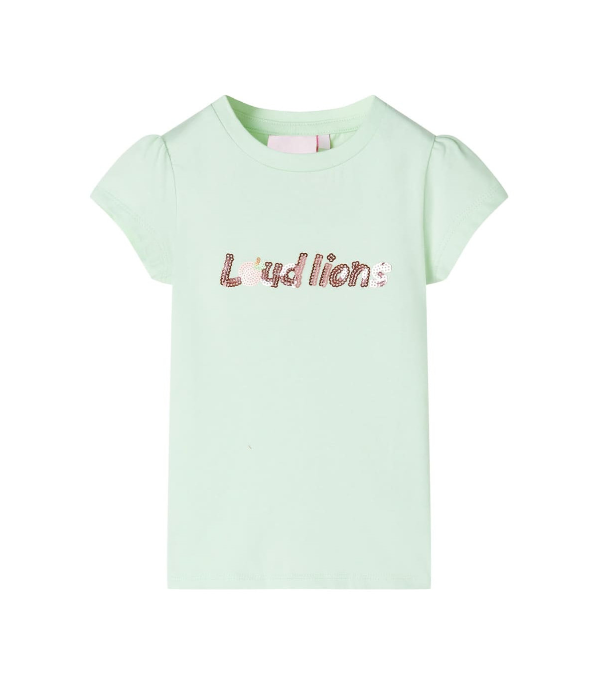 Our children’s clothing line is all about affordable, high-quality, and durable everyday wear for kids aged 1.5 to 10. Our range includes jackets, sweaters, shirts, and many more, with a variety in style, size, and colour. Following the high-quality standard in the market, we are using high-grade materials and advanced manufacturing techniques. This kids' T-shirt has cap sleeves, a round neckline, and a straight model. This children's T-shirt features sequinned letters. The children's cap sleeve T-shirt is made from soft material that includes 95% cotton and 5% elastane for comfort and breathability. Good to know: The size chart in the picture provides measurements for kids aged 1.5 to 10, covering the height, chest, waist, and hip. You can easily find the right fit for your child.