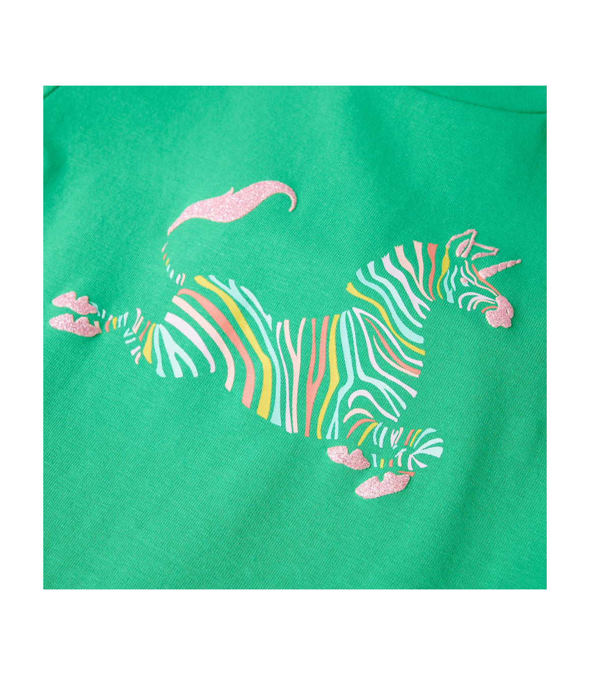 Our children's clothing line is all about affordable, high-quality, and durable everyday wear for kids aged 1.5 to 10. Our range includes jackets, sweaters, shirts, and many more, with a variety in style, size, and colour. Following the high-quality standard in the market, we are using high-grade materials and advanced manufacturing techniques. This kids' T-shirt has short sleeves, a round neckline, and a straight model. This pink T-shirt features a colourful unicorn on the chest. The children's short sleeve T-shirt is made of 95% cotton and 5% elastane for comfort and breathability. Good to know: The size chart in the picture provides measurements for kids aged 1.5 to 10, covering the height, chest, waist, and hip. You can easily find the right fit for your child.