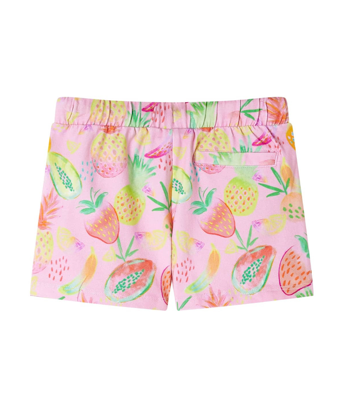 Our children's clothing line is all about affordable, high-quality, and durable everyday wear for kids aged 1.5 to 10. Our range includes jackets, sweaters, shirts, and many more, with a variety in style, size, and colour. Following the high-quality standard in the market, we are using high-grade materials and advanced manufacturing techniques. This pair of kids' shorts has an elastic drawstring waistband, two front side pockets, and a welt pocket at the back. The children's shorts are printed with fruits all over. The shorts for kids are made from soft material that includes 92% cotton and 8% elastane for comfort and breathability. Good to know: This size chart in the picture provides measurements for kids aged 1.5 to 10, covering the height, chest, waist, and hip. You can easily find the right fit for your child.