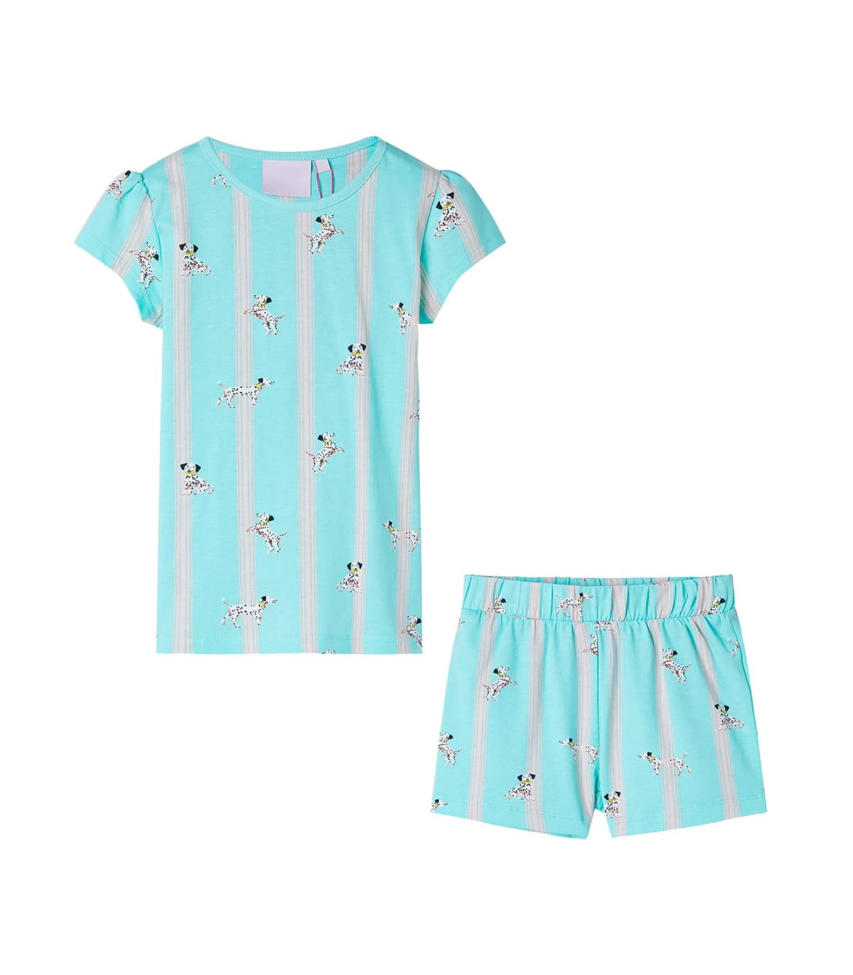 Our children's clothing line is all about affordable, high-quality, and durable everyday wear for kids aged 1.5 to 10. Our range includes jackets, sweaters, shirts, and many more, with a variety in style, size, and colour. Following the high-quality standard in the market, we are using high-grade materials and advanced manufacturing techniques. This pair of kids' pyjamas with short sleeves has a round neckline, elasticated waistband, and a regular fit. This pair of children's pyjamas is designed with vertical stripes and printed with spotted dogs all over. The kids' loungewear is made from soft material with 95% cotton and 5% elastane for extra comfort and breathability. Good to know: The size chart in the picture provides measurements for kids aged 1.5 to 10, covering the height, chest, waist, and hip. You can easily find the right fit for your child.
