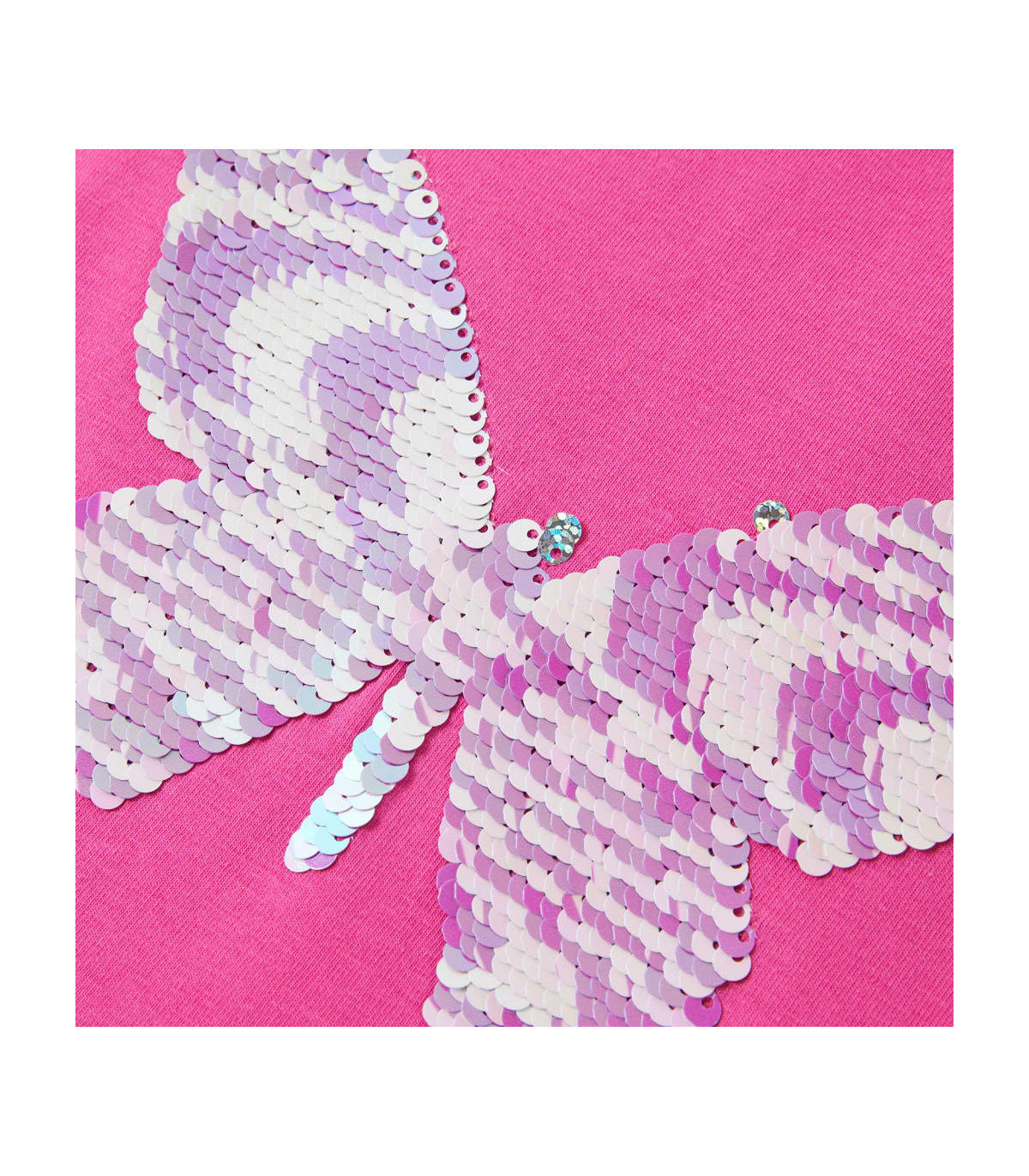 Our children’s clothing line is all about affordable, high-quality, and durable everyday wear for kids aged 1.5 to 10. Our range includes jackets, sweaters, shirts, and many more, with a variety in style, size, and colour. Following the high-quality standard in the market, we are using high-grade materials and advanced manufacturing techniques. This kids' T-shirt has cap sleeves, a round neckline, and a straight model. This children's T-shirt features a sequinned butterfly. The children's cap sleeve T-shirt is made from soft material that includes 95% cotton and 5% elastane for comfort and breathability. Good to know: The size chart in the picture provides measurements for kids aged 1.5 to 10, covering the height, chest, waist, and hip. You can easily find the right fit for your child.