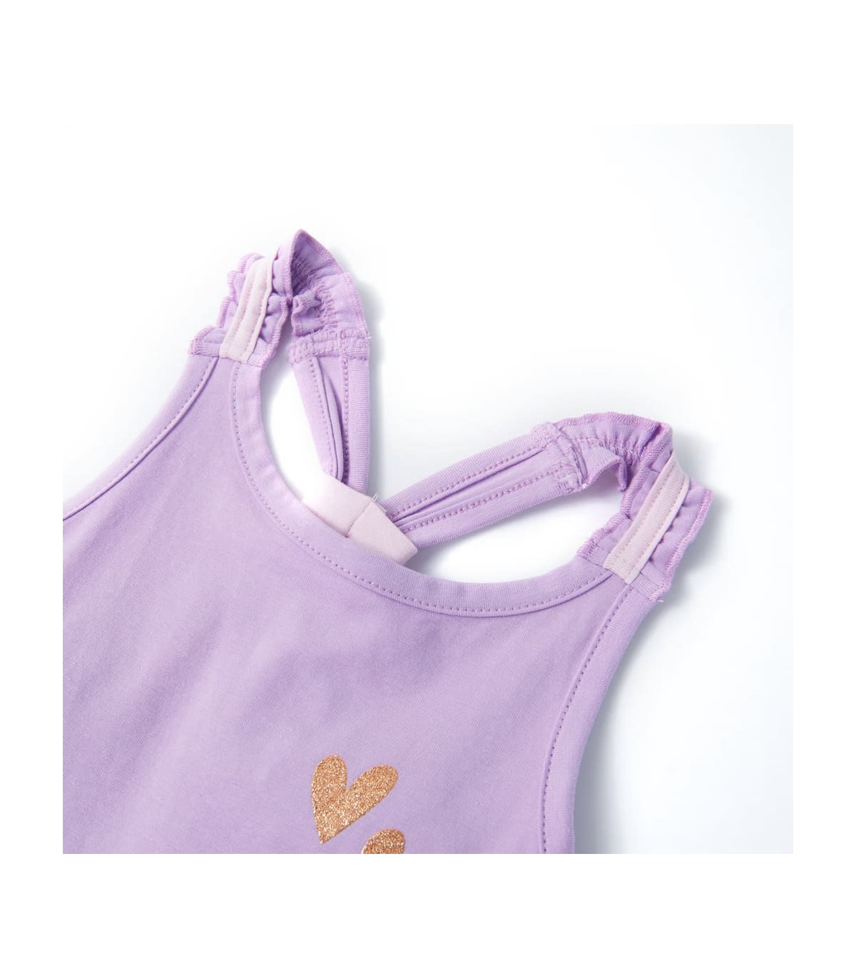 Our children's clothing line is all about affordable, high-quality, and durable everyday wear for kids aged 1.5 to 10. Our range includes jackets, sweaters, shirts, and many more, with a variety in style, size, and colour. Following the high-quality standard in the market, we are using high-grade materials and advanced manufacturing techniques. This kids' tank top has elastic shoulder straps and a straight fit. The glitter hearts make the children's tank top look elegant and beautiful. The tank top for kids is made of 95% cotton and 5% elastane for a soft and comfortable touch. Good to know: This size chart in the picture provides measurements for kids aged 1.5 to 10, covering the height, chest, waist, and hip. You can easily find the right fit for your child.