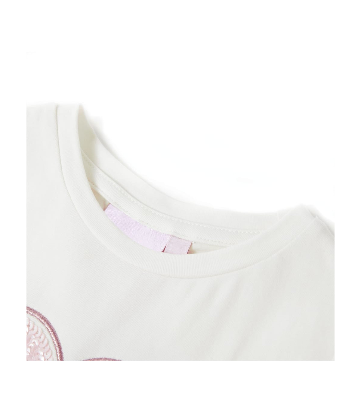 Our children’s clothing line is all about affordable, high-quality, and durable everyday wear for kids aged 1,5 to 10. Our range includes jackets, sweaters, shirts, and many more, with a variety in style, size, and colour. Following the high-quality standard in the market, we are using high-grade materials and advanced manufacturing techniques. This kids' T-shirt has puff sleeves, a round neckline, and a straight model. This ecru T-shirt features a lovely sequined heart. The children's short sleeve T-shirt is made of 95% cotton and 5% elastane for a soft and comfortable touch. Good to know: The size chart in the picture provides measurements for kids aged 1,5 to 10, covering the height, chest, waist, and hip. You can easily find the right fit for your child.