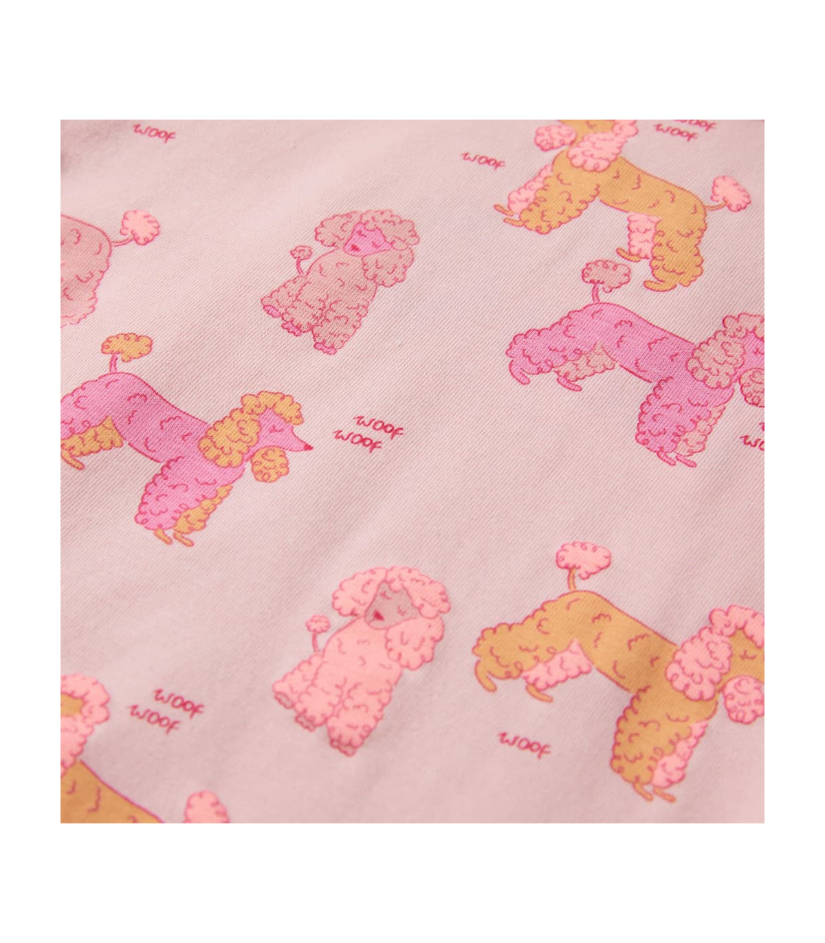 Our children's clothing line is all about affordable, high-quality, and durable everyday wear for kids aged 1.5 to 10. Our range includes jackets, sweaters, shirts, and many more, with a variety in style, size, and colour. Following the high-quality standard in the market, we are using high-grade materials and advanced manufacturing techniques. This pair of kids' pyjamas with short sleeves has a round neckline, elasticated waistband, and a regular fit. This pair of children's pyjamas features an all-over dog print. The kids' loungewear is made from soft material with 95% cotton and 5% elastane for extra comfort and breathability. Good to know: The size chart in the picture provides measurements for kids aged 1.5 to 10, covering the height, chest, waist, and hip. You can easily find the right fit for your child.