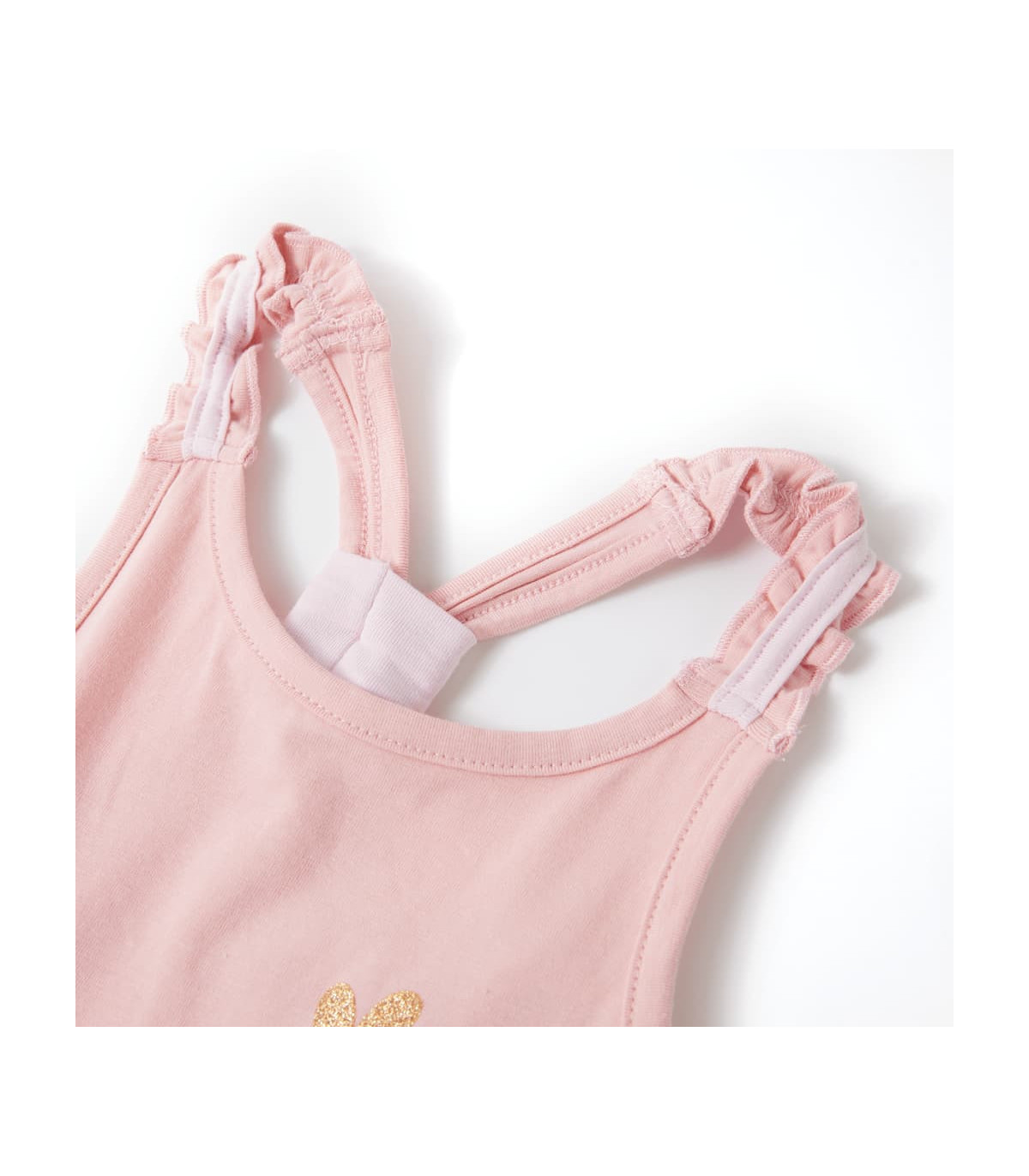 Our children's clothing line is all about affordable, high-quality, and durable everyday wear for kids aged 1.5 to 10. Our range includes jackets, sweaters, shirts, and many more, with a variety in style, size, and colour. Following the high-quality standard in the market, we are using high-grade materials and advanced manufacturing techniques. This kids' tank top has elastic shoulder straps and a straight fit. The glitter hearts make the children's tank top look elegant and beautiful. The tank top for kids is made of 95% cotton and 5% elastane for a soft and comfortable touch. Good to know: This size chart in the picture provides measurements for kids aged 1.5 to 10, covering the height, chest, waist, and hip. You can easily find the right fit for your child.