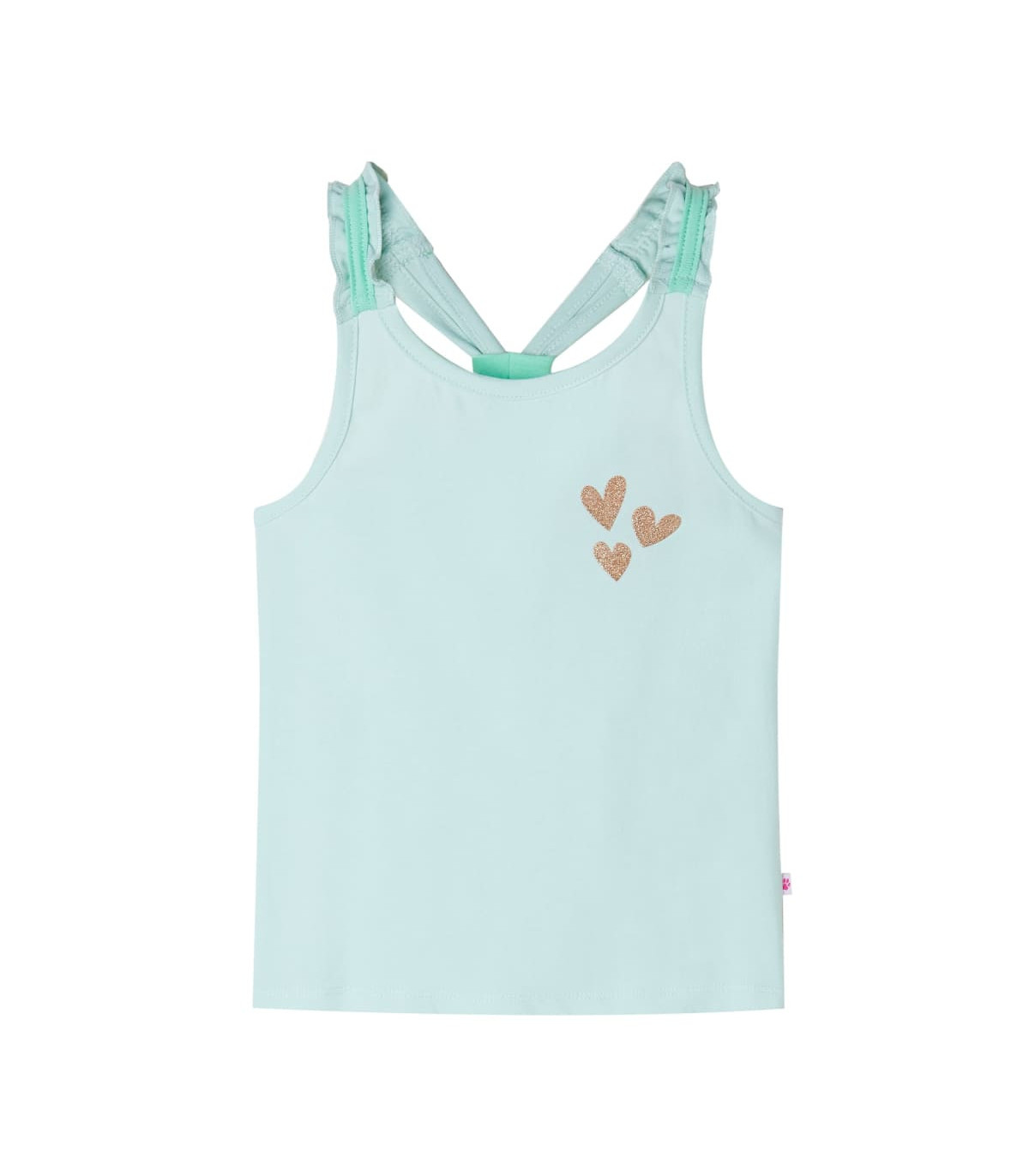 Our children's clothing line is all about affordable, high-quality, and durable everyday wear for kids aged 1.5 to 10. Our range includes jackets, sweaters, shirts, and many more, with a variety in style, size, and colour. Following the high-quality standard in the market, we are using high-grade materials and advanced manufacturing techniques. This kids' tank top has elastic shoulder straps and a straight fit. The glitter hearts make the children's tank top look elegant and beautiful. The tank top for kids is made of 95% cotton and 5% elastane for a soft and comfortable touch. Good to know: This size chart in the picture provides measurements for kids aged 1.5 to 10, covering the height, chest, waist, and hip. You can easily find the right fit for your child.
