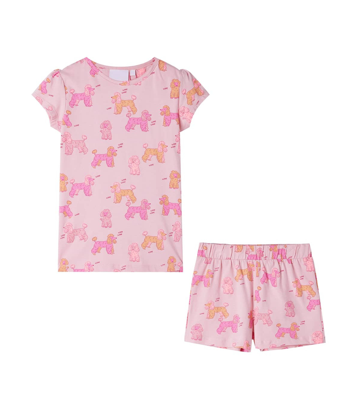 Our children's clothing line is all about affordable, high-quality, and durable everyday wear for kids aged 1.5 to 10. Our range includes jackets, sweaters, shirts, and many more, with a variety in style, size, and colour. Following the high-quality standard in the market, we are using high-grade materials and advanced manufacturing techniques. This pair of kids' pyjamas with short sleeves has a round neckline, elasticated waistband, and a regular fit. This pair of children's pyjamas features an all-over dog print. The kids' loungewear is made from soft material with 95% cotton and 5% elastane for extra comfort and breathability. Good to know: The size chart in the picture provides measurements for kids aged 1.5 to 10, covering the height, chest, waist, and hip. You can easily find the right fit for your child.