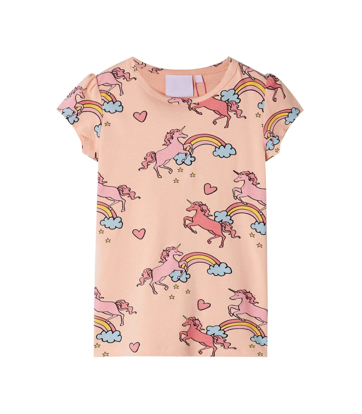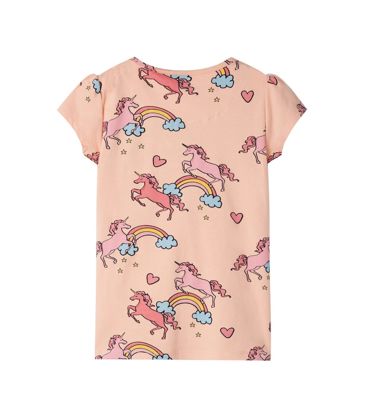 Our children's clothing line is all about affordable, high-quality, and durable everyday wear for kids aged 1.5 to 10. Our range includes jackets, sweaters, shirts, and many more, with a variety in style, size, and colour. Following the high-quality standard in the market, we are using high-grade materials and advanced manufacturing techniques. This pair of kids' pyjamas with short sleeves has a round neckline, elasticated waistband, and a regular fit. This pair of children's pyjamas is printed with unicorns and rainbows and is decorated with patterns of hearts, stars and clouds. The kids' loungewear is made from soft material with 95% cotton and 5% elastane for extra comfort and breathability. Good to know: The size chart in the picture provides measurements for kids aged 1.5 to 10, covering the height, chest, waist, and hip. You can easily find the right fit for your child.