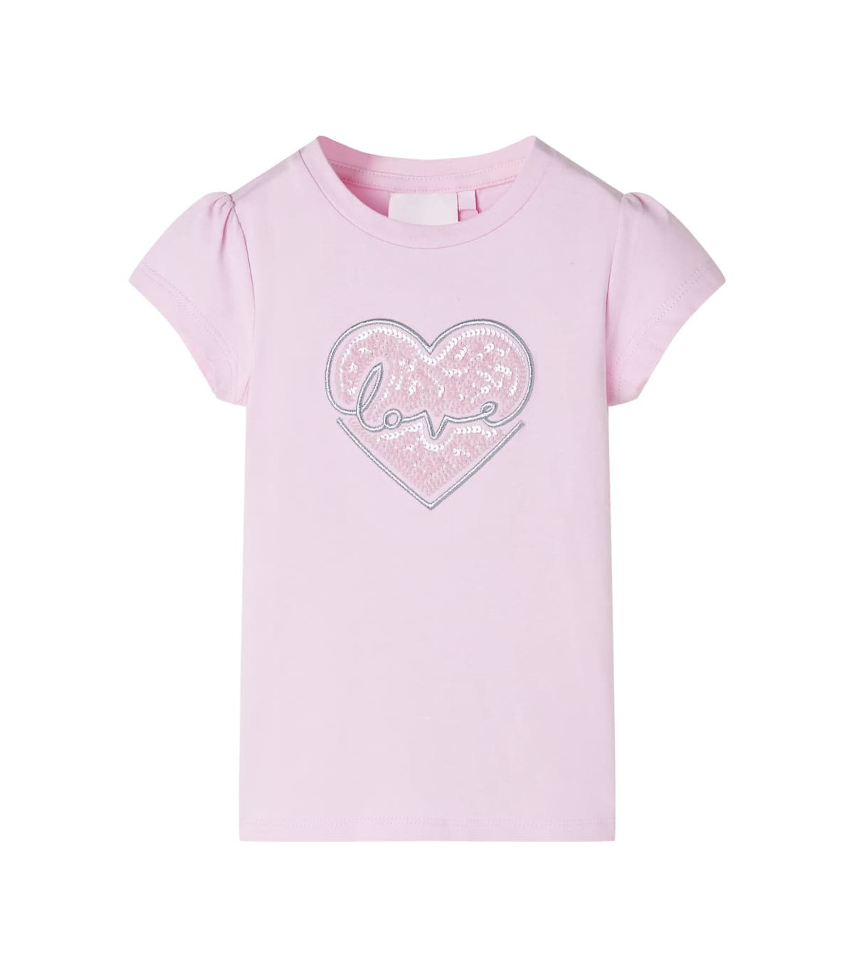 Our children’s clothing line is all about affordable, high-quality, and durable everyday wear for kids aged 1,5 to 10. Our range includes jackets, sweaters, shirts, and many more, with a variety in style, size, and colour. Following the high-quality standard in the market, we are using high-grade materials and advanced manufacturing techniques. This kids' T-shirt has puff sleeves, a round neckline, and a straight model. This ecru T-shirt features a lovely sequined heart. The children's short sleeve T-shirt is made of 95% cotton and 5% elastane for a soft and comfortable touch. Good to know: The size chart in the picture provides measurements for kids aged 1,5 to 10, covering the height, chest, waist, and hip. You can easily find the right fit for your child.