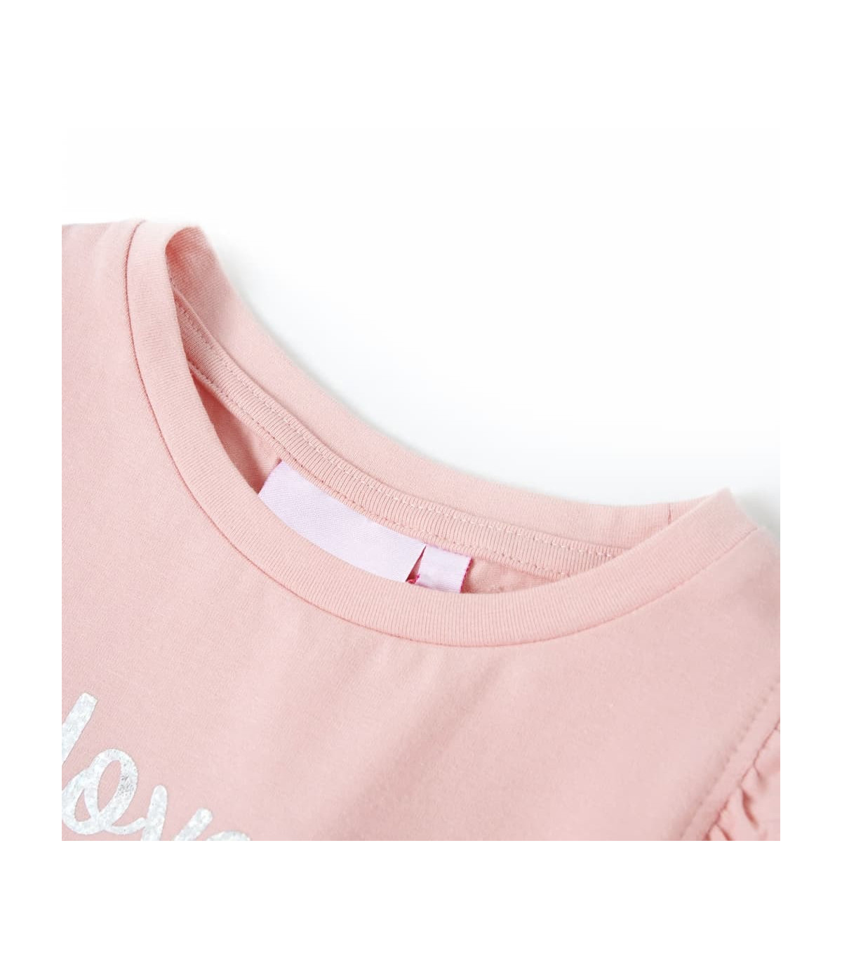 Our children’s clothing line is all about affordable, high-quality, and durable everyday wear for kids aged 1.5 to 10. Our range includes jackets, sweaters, shirts, and many more, with a variety in style, size, and colour. Following the high-quality standard in the market, we are using high-grade materials and advanced manufacturing techniques. This kids' T-shirt has ruffle sleeves, a round neckline, and a straight model. The glitter print makes the children's T-shirt look elegant and beautiful. The children's short sleeve T-shirt is made of 95% cotton and 5% elastane for a soft and comfortable touch. Good to know: The size chart in the picture provides measurements for kids aged 1.5 to 10, covering the height, chest, waist, and hip. You can easily find the right fit for your child.