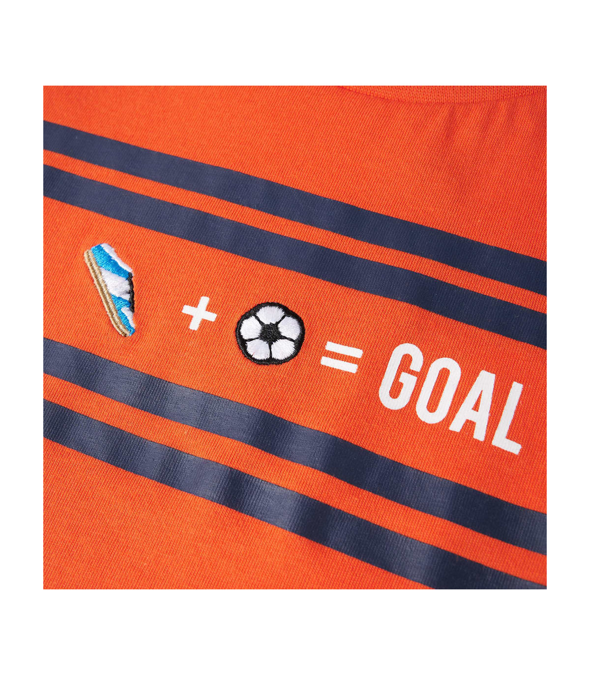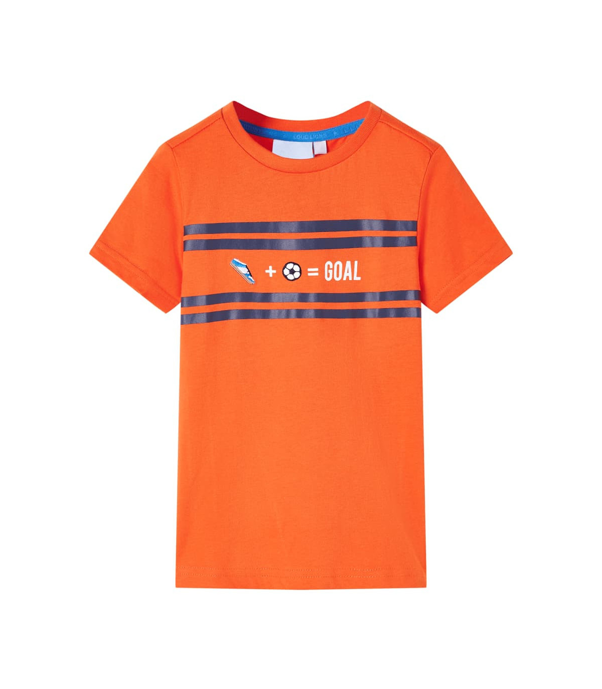 Our children’s clothing line is all about affordable, high-quality, and durable everyday wear for kids aged 1,5 to 10. Our range includes jackets, sweaters, shirts, and many more, with a variety in style, size, and colour. Following the high-quality standard in the market, we are using high-grade materials and advanced manufacturing techniques. This kids' T-shirt has short sleeves, a round neckline, and a straight model. The children's T-shirt has horizontal stripes across the chest. The pattern consists of a football shoe, a football and the word “GOAL”. The T-shirt for kids is made of 100% cotton for a soft and comfortable touch. Good to know: This size chart in the picture provides measurements for kids aged 1,5 to 10, covering the height, chest, waist, and hip. You can easily find the right fit for your child.
