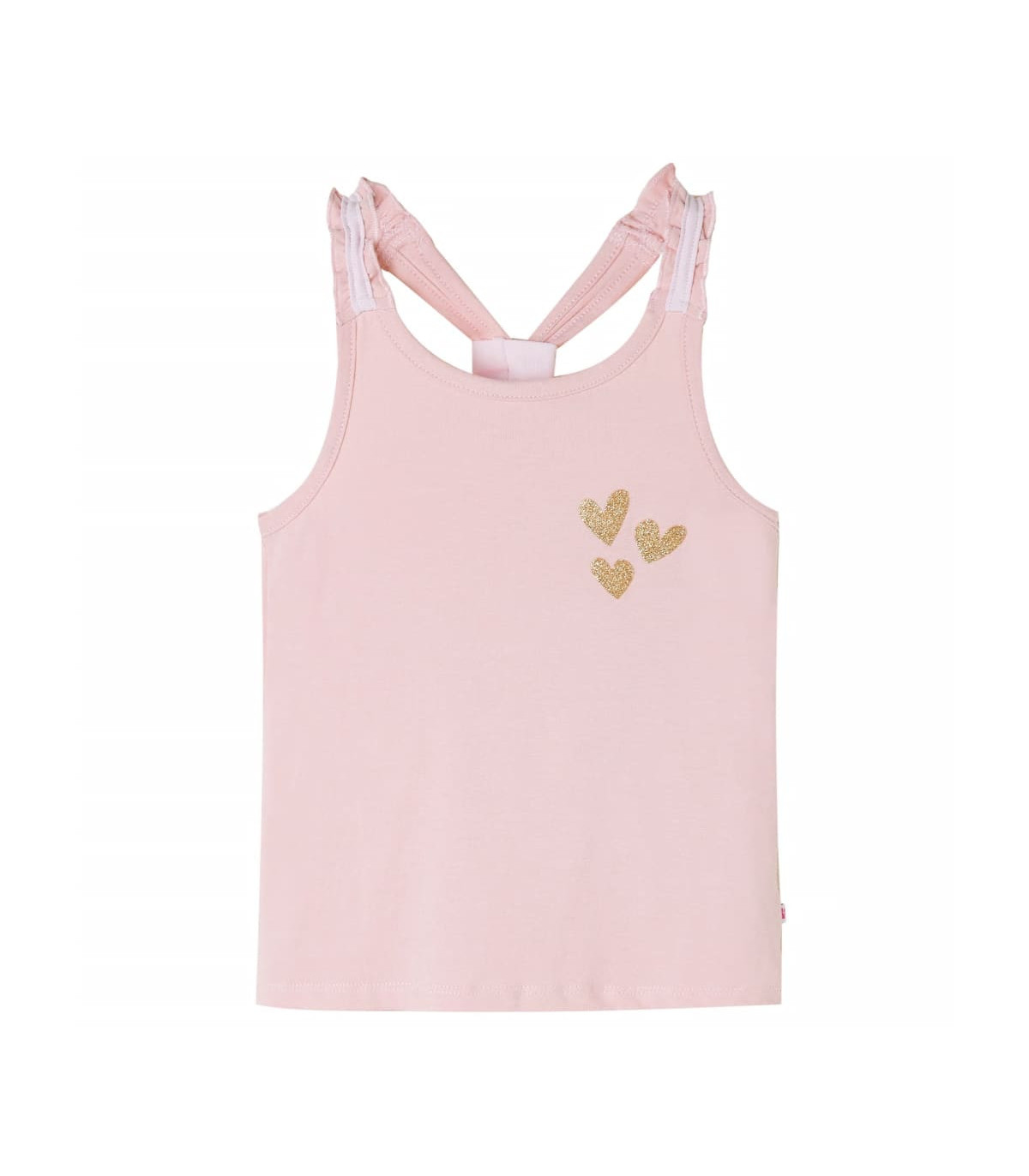 Our children's clothing line is all about affordable, high-quality, and durable everyday wear for kids aged 1.5 to 10. Our range includes jackets, sweaters, shirts, and many more, with a variety in style, size, and colour. Following the high-quality standard in the market, we are using high-grade materials and advanced manufacturing techniques. This kids' tank top has elastic shoulder straps and a straight fit. The glitter hearts make the children's tank top look elegant and beautiful. The tank top for kids is made of 95% cotton and 5% elastane for a soft and comfortable touch. Good to know: This size chart in the picture provides measurements for kids aged 1.5 to 10, covering the height, chest, waist, and hip. You can easily find the right fit for your child.