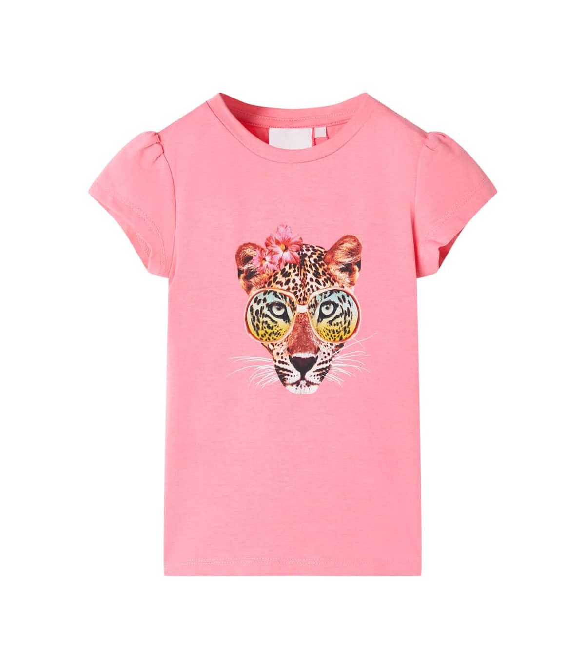 Our children's clothing line is all about affordable, high-quality, and durable everyday wear for kids aged 1.5 to 10. Our range includes jackets, sweaters, shirts, and many more, with a variety in style, size, and colour. Following the high-quality standard in the market, we are using high-grade materials and advanced manufacturing techniques. This kids' T-shirt has short sleeves, a round neckline, and a straight model. This T-shirt features a leopard head with fashionable glasses and flowers on the chest. The children's short sleeve T-shirt is made of 95% cotton and 5% elastane for comfort and breathability. Good to know: The size chart in the picture provides measurements for kids aged 1.5 to 10, covering the height, chest, waist, and hip. You can easily find the right fit for your child.