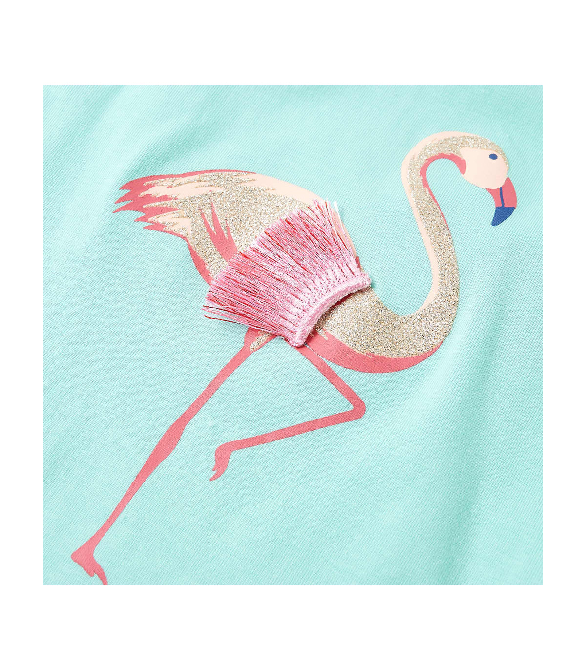Our children's clothing line is all about affordable, high-quality, and durable everyday wear for kids aged 1.5 to 10. Our range includes jackets, sweaters, shirts, and many more, with a variety in style, size, and colour. Following the high-quality standard in the market, we are using high-grade materials and advanced manufacturing techniques. This kids' tank top has elastic shoulder straps and a straight fit. The glitter flamingo with fancy tape makes the children's tank top look elegant and beautiful. The tank top for kids is made of 95% cotton and 5% elastane for a soft and comfortable touch. Good to know: This size chart in the picture provides measurements for kids aged 1.5 to 10, covering the height, chest, waist, and hip. You can easily find the right fit for your child.