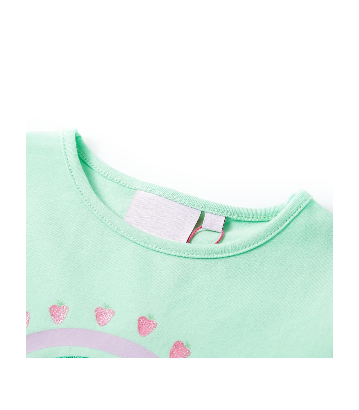 Our children's clothing line is all about affordable, high-quality, and durable everyday wear for kids aged 1.5 to 10. Our range includes jackets, sweaters, shirts, and many more, with a variety in style, size, and colour. Following the high-quality standard in the market, we are using high-grade materials and advanced manufacturing techniques. This kids' T-shirt has short sleeves with sewn-in turn-ups, a round neckline, and a straight model. This T-shirt is printed with a sparkling rainbow pattern with strawberries dotted around the outer edge of the rainbow. The children's short sleeve T-shirt is made of 95% cotton and 5% elastane for comfort and breathability. Good to know: The size chart in the picture provides measurements for kids aged 1.5 to 10, covering the height, chest, waist, and hip. You can easily find the right fit for your child.