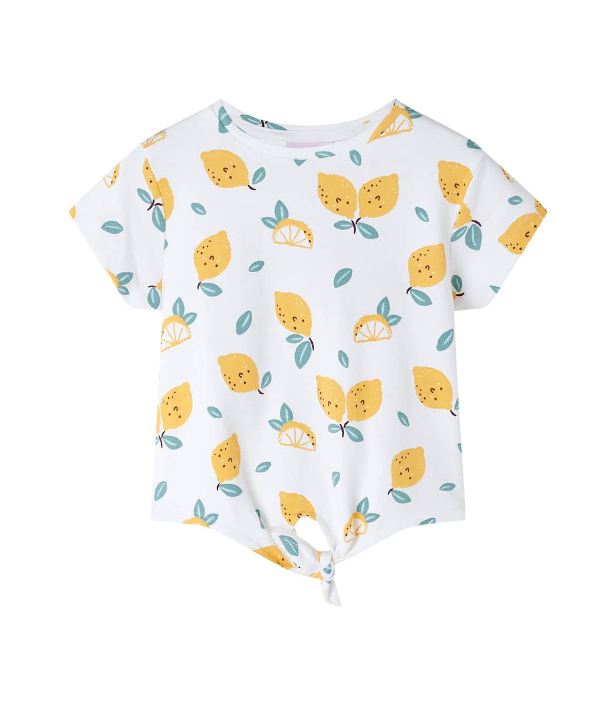 Our children’s clothing line is all about affordable, high-quality, and durable everyday wear for kids aged 1.5 to 10. Our range includes jackets, sweaters, shirts, and many more, with a variety in style, size, and colour. Following the high-quality standard in the market, we are using high-grade materials and advanced manufacturing techniques. This kids' T-shirt has short sleeves, a round neckline, and a straight model. The children's T-shirt features cute lemon patterns on the front and has a tied hemline. The T-shirt for kids is made of 100% cotton for a soft and comfortable touch. Good to know: This size chart in the picture provides measurements for kids aged 1.5 to 10, covering the height, chest, waist, and hip. You can easily find the right fit for your child.