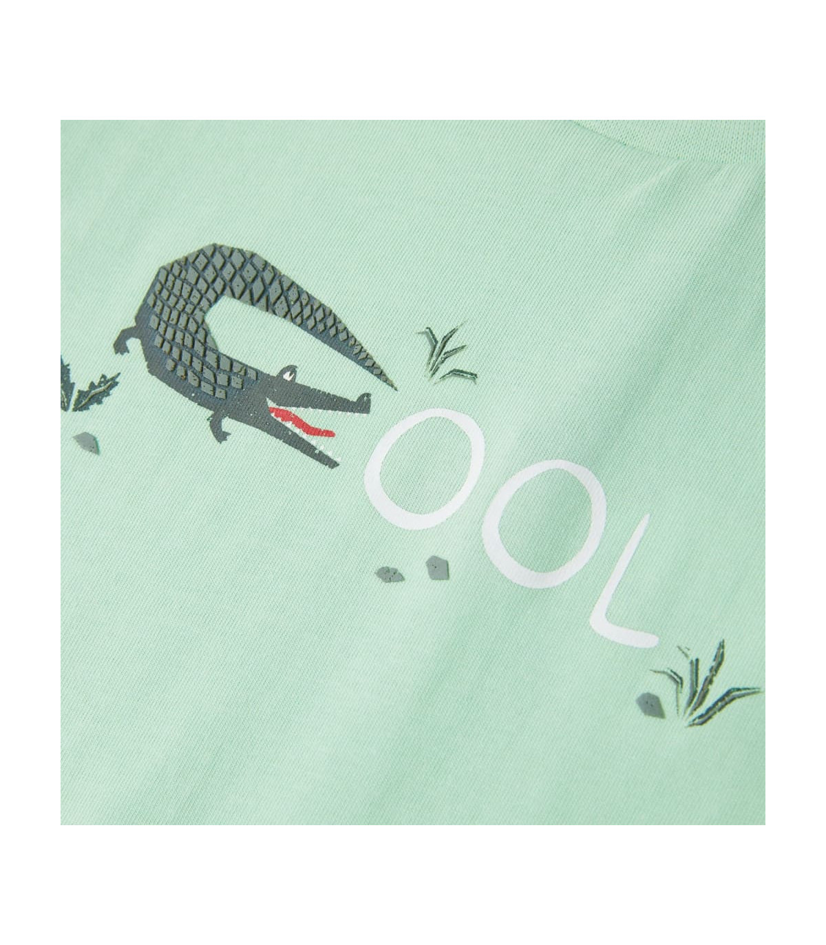 Our children’s clothing line is all about affordable, high-quality, and durable everyday wear for kids aged 1.5 to 10. Our range includes jackets, sweaters, shirts, and many more, with a variety in style, size, and colour. Following the high-quality standard in the market, we are using high-grade materials and advanced manufacturing techniques. This kids' T-shirt has short sleeves, a ribbed round neckline, and a straight model. This children's T-shirt features a crocodile with letters and grass. The children's short sleeve T-shirt is made of 100% cotton for comfort and breathability. Good to know: The size chart in the picture provides measurements for kids aged 1.5 to 10, covering the height, chest, waist, and hip. You can easily find the right fit for your child.