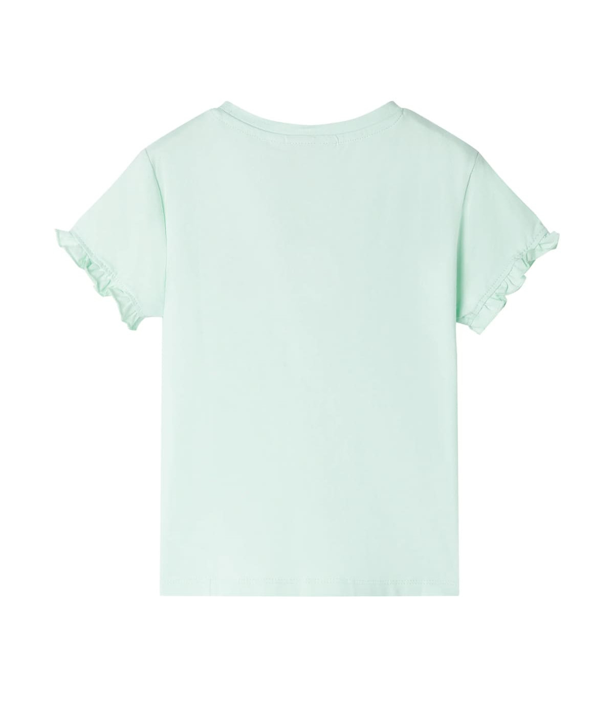 Our children's clothing line is all about affordable, high-quality, and durable everyday wear for kids aged 1.5 to 10. Our range includes jackets, sweaters, shirts, and many more, with a variety in style, size, and colour. Following the high-quality standard in the market, we are using high-grade materials and advanced manufacturing techniques. This kids' T-shirt has short sleeves with frilly edges, a round neckline, and a straight model. This T-shirt features a flamingo ice cream for an eye-catching and interesting look! The children's short sleeve T-shirt is made of 95% cotton and 5% elastane for comfort and breathability. Good to know: The size chart in the picture provides measurements for kids aged 1.5 to 10, covering the height, chest, waist, and hip. You can easily find the right fit for your child.