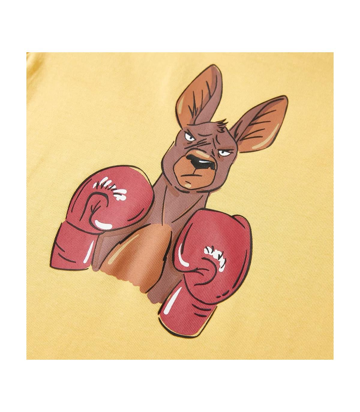 Our children’s clothing line is all about affordable, high-quality, and durable everyday wear for kids aged 1.5 to 10. Our range includes jackets, sweaters, shirts, and many more, with a variety in style, size, and colour. Following the high-quality standard in the market, we are using high-grade materials and advanced manufacturing techniques. This kids' T-shirt has short sleeves, a ribbed round neckline, and a straight model. This children's T-shirt features a kangaroo with boxing gloves. The children's short sleeve T-shirt is made of 100% cotton for comfort and breathability. Good to know: The size chart in the picture provides measurements for kids aged 1.5 to 10, covering the height, chest, waist, and hip. You can easily find the right fit for your child.