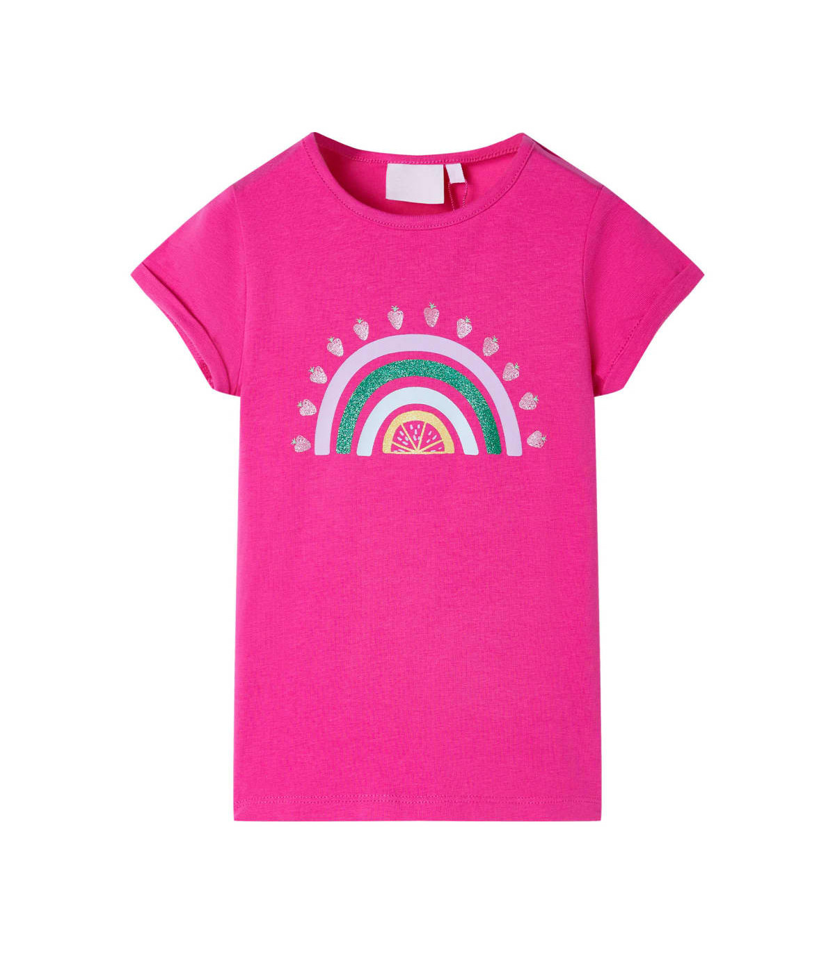 Our children's clothing line is all about affordable, high-quality, and durable everyday wear for kids aged 1.5 to 10. Our range includes jackets, sweaters, shirts, and many more, with a variety in style, size, and colour. Following the high-quality standard in the market, we are using high-grade materials and advanced manufacturing techniques. This kids' T-shirt has short sleeves with sewn-in turn-ups, a round neckline, and a straight model. This T-shirt is printed with a sparkling rainbow pattern with strawberries dotted around the outer edge of the rainbow. The children's short sleeve T-shirt is made of 95% cotton and 5% elastane for comfort and breathability. Good to know: The size chart in the picture provides measurements for kids aged 1.5 to 10, covering the height, chest, waist, and hip. You can easily find the right fit for your child.