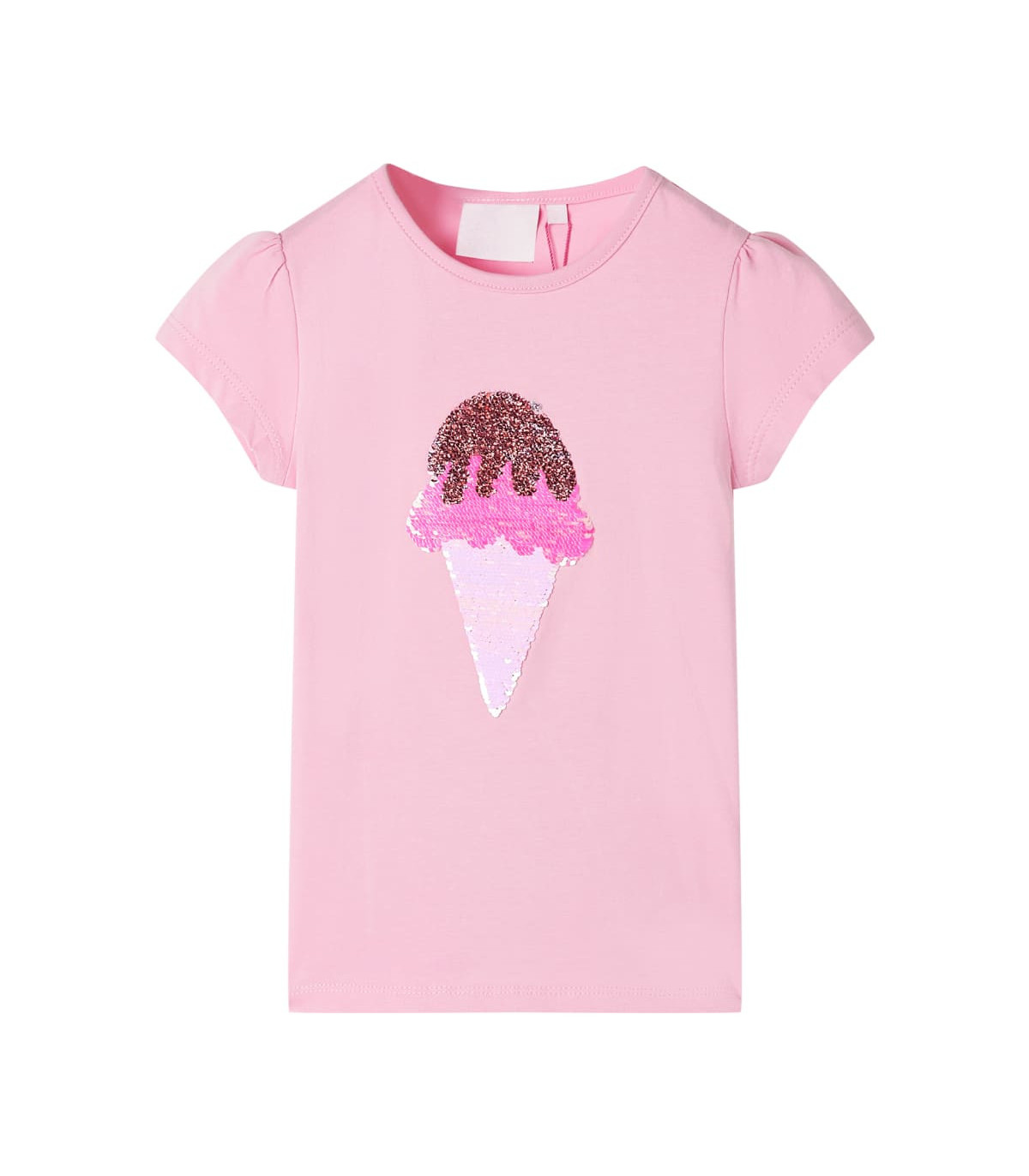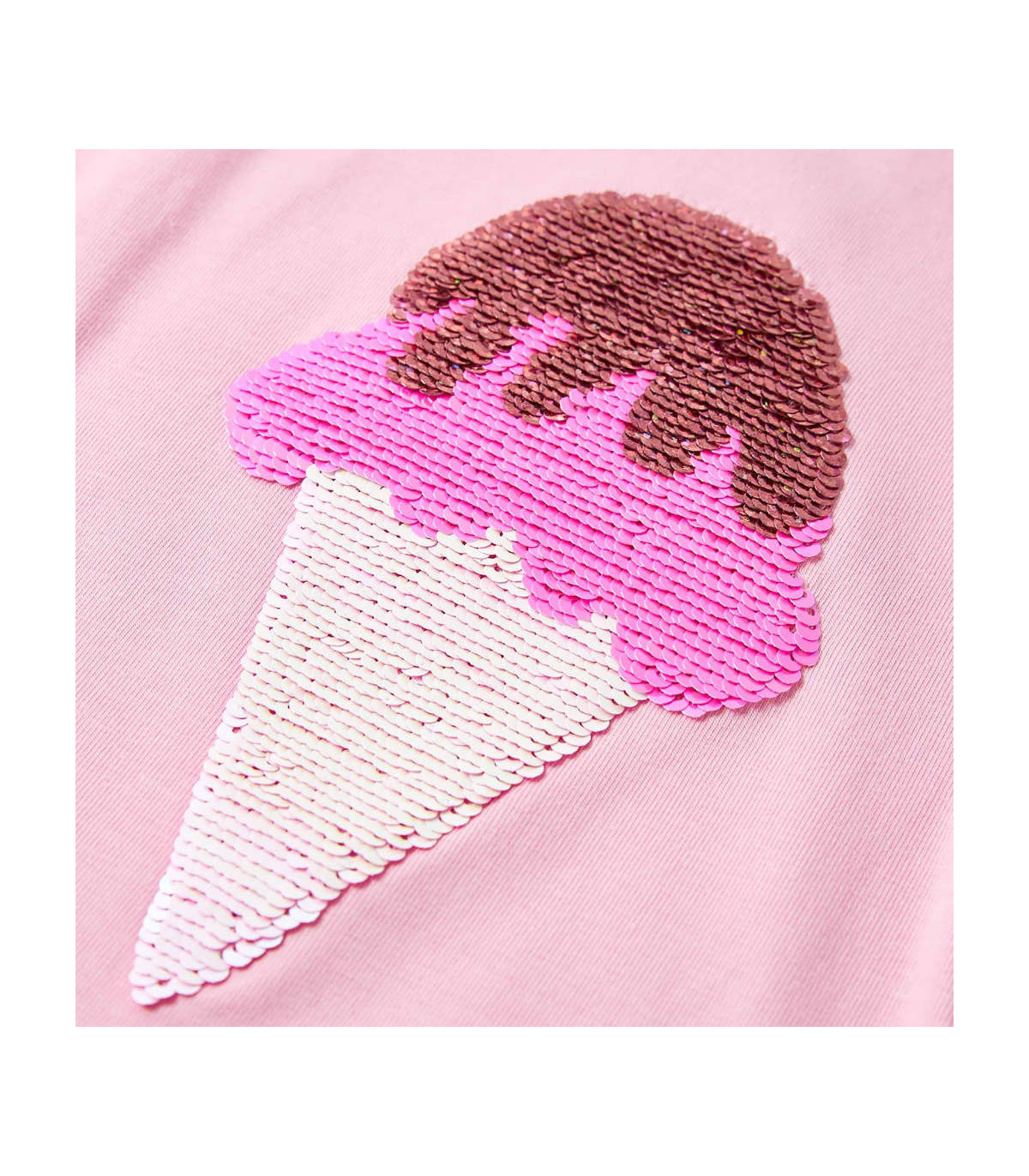 Our children's clothing line is all about affordable, high-quality, and durable everyday wear for kids aged 1.5 to 10. Our range includes jackets, sweaters, shirts, and many more, with a variety in style, size, and colour. Following the high-quality standard in the market, we are using high-grade materials and advanced manufacturing techniques. This kids' T-shirt has short sleeves, a round neckline, and a straight model. This T-shirt features a reversible sequin ice cream, bringing a touch of magic to the front. The children's short sleeve T-shirt is made from soft material with cotton, polyester and elastane for comfort and breathability. Good to know: The size chart in the picture provides measurements for kids aged 1.5 to 10, covering the height, chest, waist, and hip. You can easily find the right fit for your child.