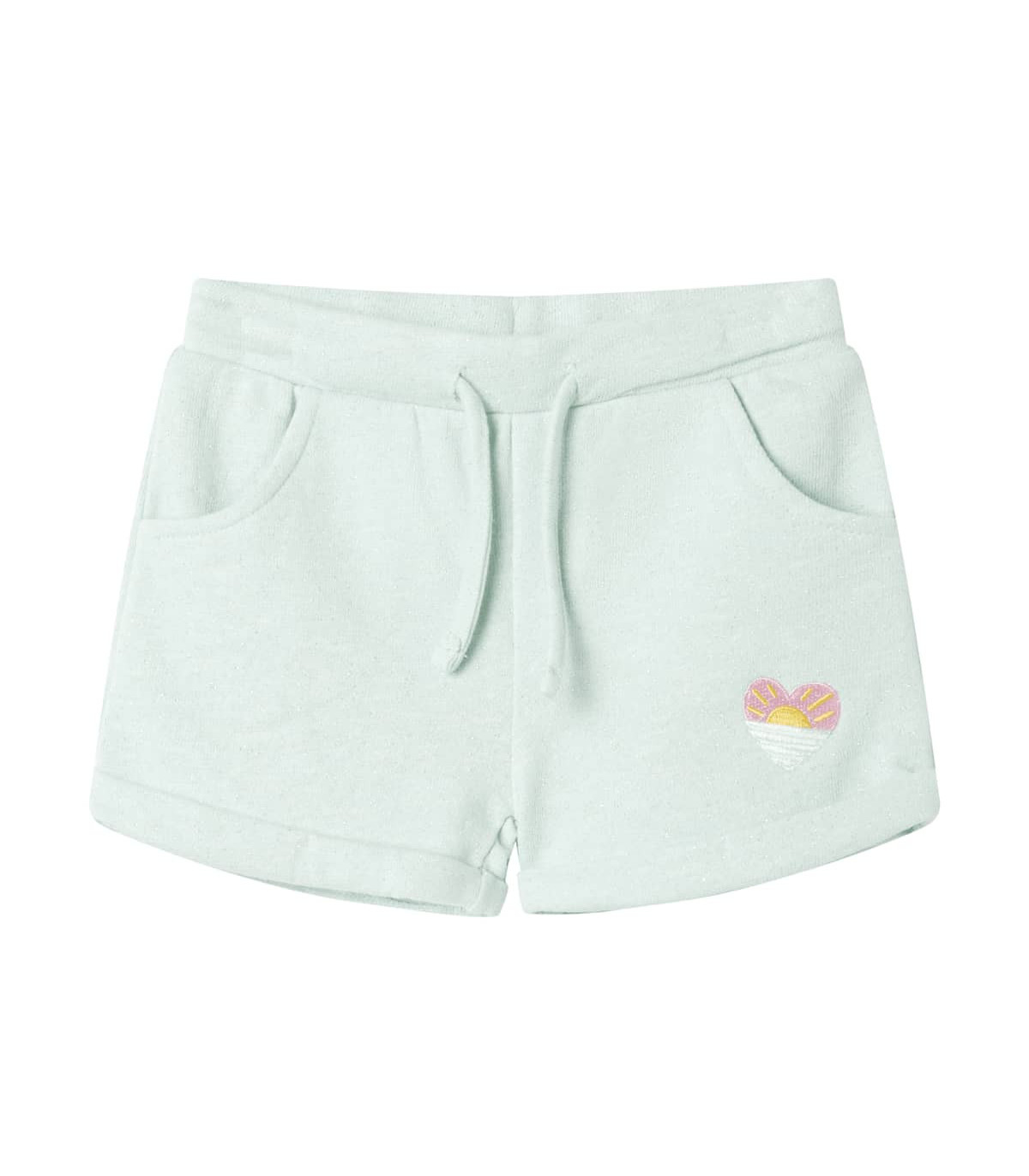Our children's clothing line is all about affordable, high-quality, and durable everyday wear for kids aged 1.5 to 10. Our range includes jackets, sweaters, shirts, and many more, with a variety in style, size, and colour. Following the high-quality standard in the market, we are using high-grade materials and advanced manufacturing techniques. This pair of kids' shorts has an elastic drawstring waistband and two insert front pockets. This pair of children's shorts is decorated with an embroidered heart. The shorts for kids are made from soft material that includes 89% cotton and 11% polyester for comfort and breathability. Good to know: This size chart in the picture provides measurements for kids aged 1.5 to 10, covering the height, chest, waist, and hip. You can easily find the right fit for your child.