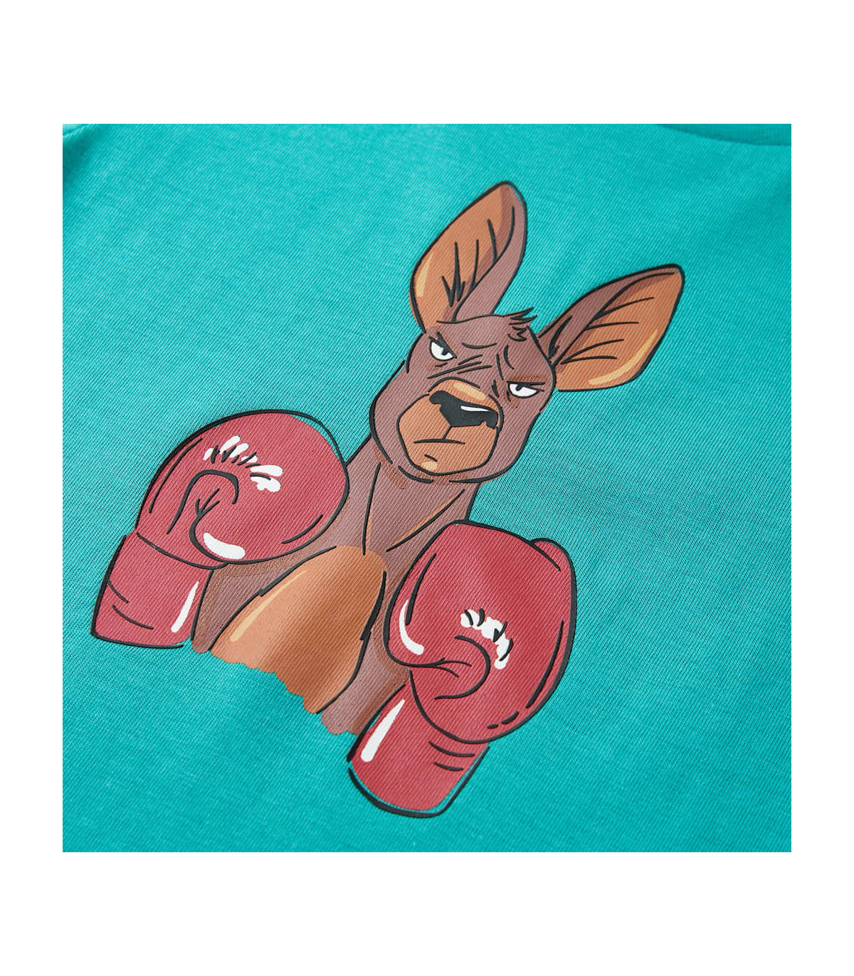 Our children’s clothing line is all about affordable, high-quality, and durable everyday wear for kids aged 1.5 to 10. Our range includes jackets, sweaters, shirts, and many more, with a variety in style, size, and colour. Following the high-quality standard in the market, we are using high-grade materials and advanced manufacturing techniques. This kids' T-shirt has short sleeves, a ribbed round neckline, and a straight model. This children's T-shirt features a kangaroo with boxing gloves. The children's short sleeve T-shirt is made of 100% cotton for comfort and breathability. Good to know: The size chart in the picture provides measurements for kids aged 1.5 to 10, covering the height, chest, waist, and hip. You can easily find the right fit for your child.