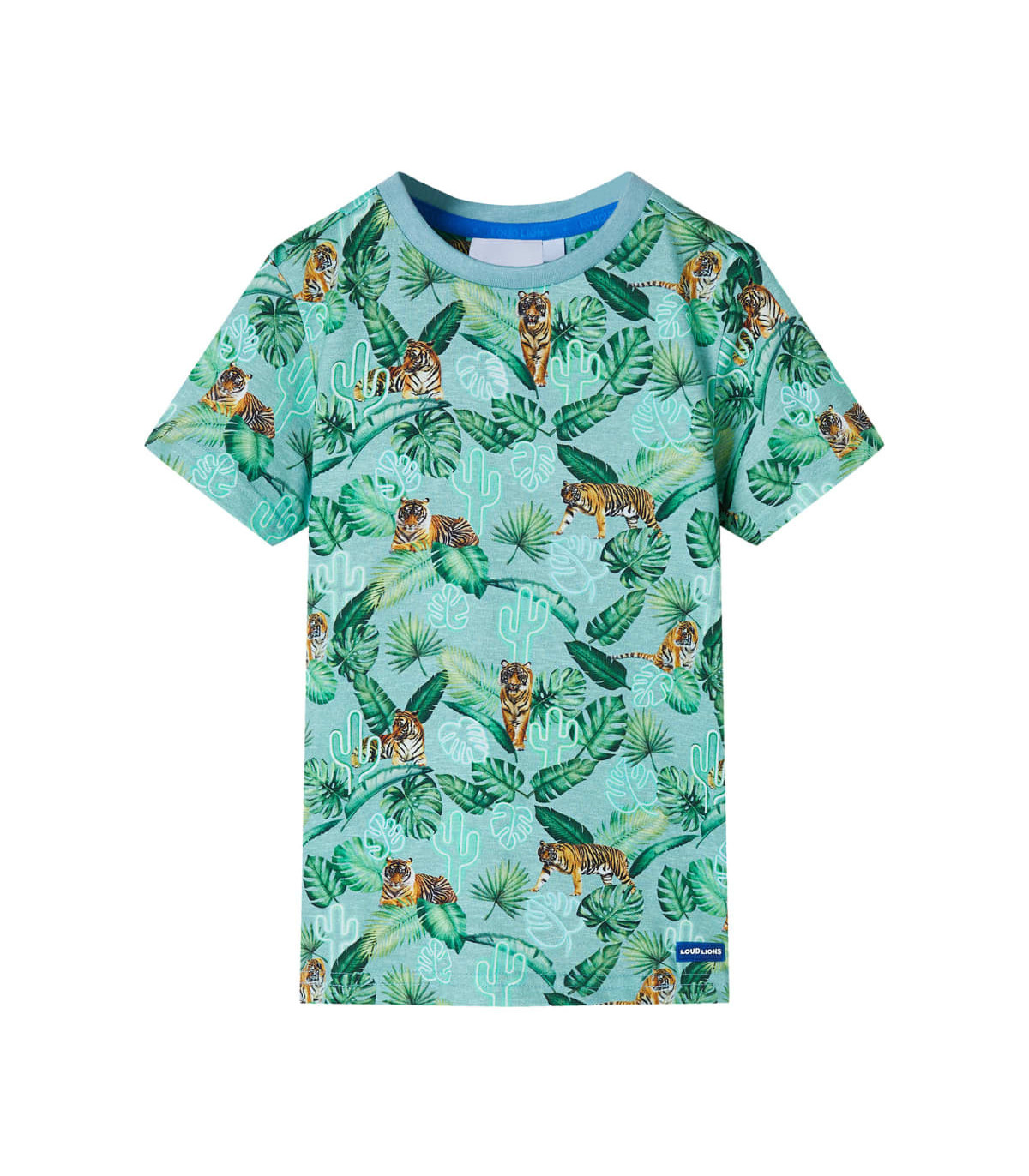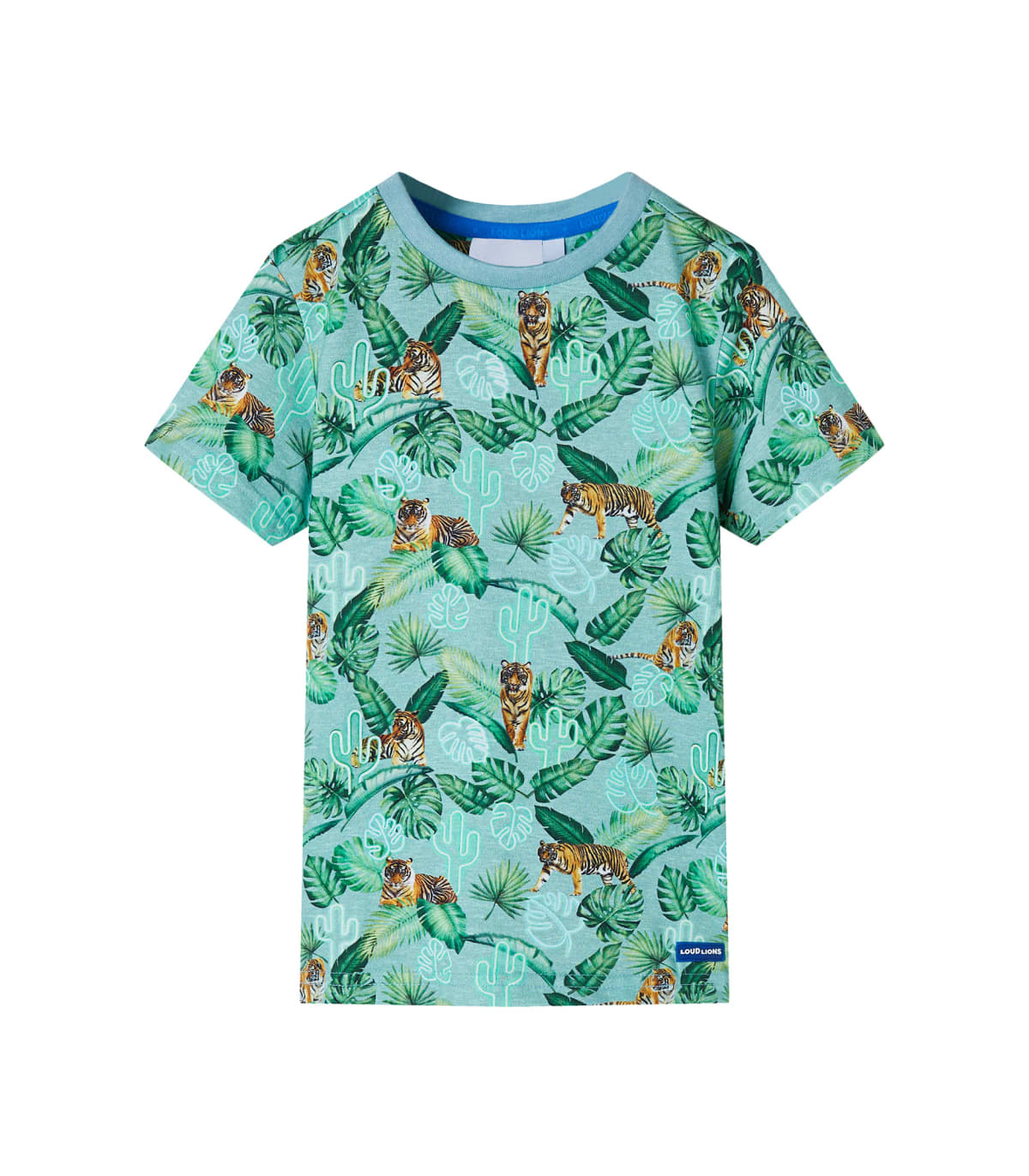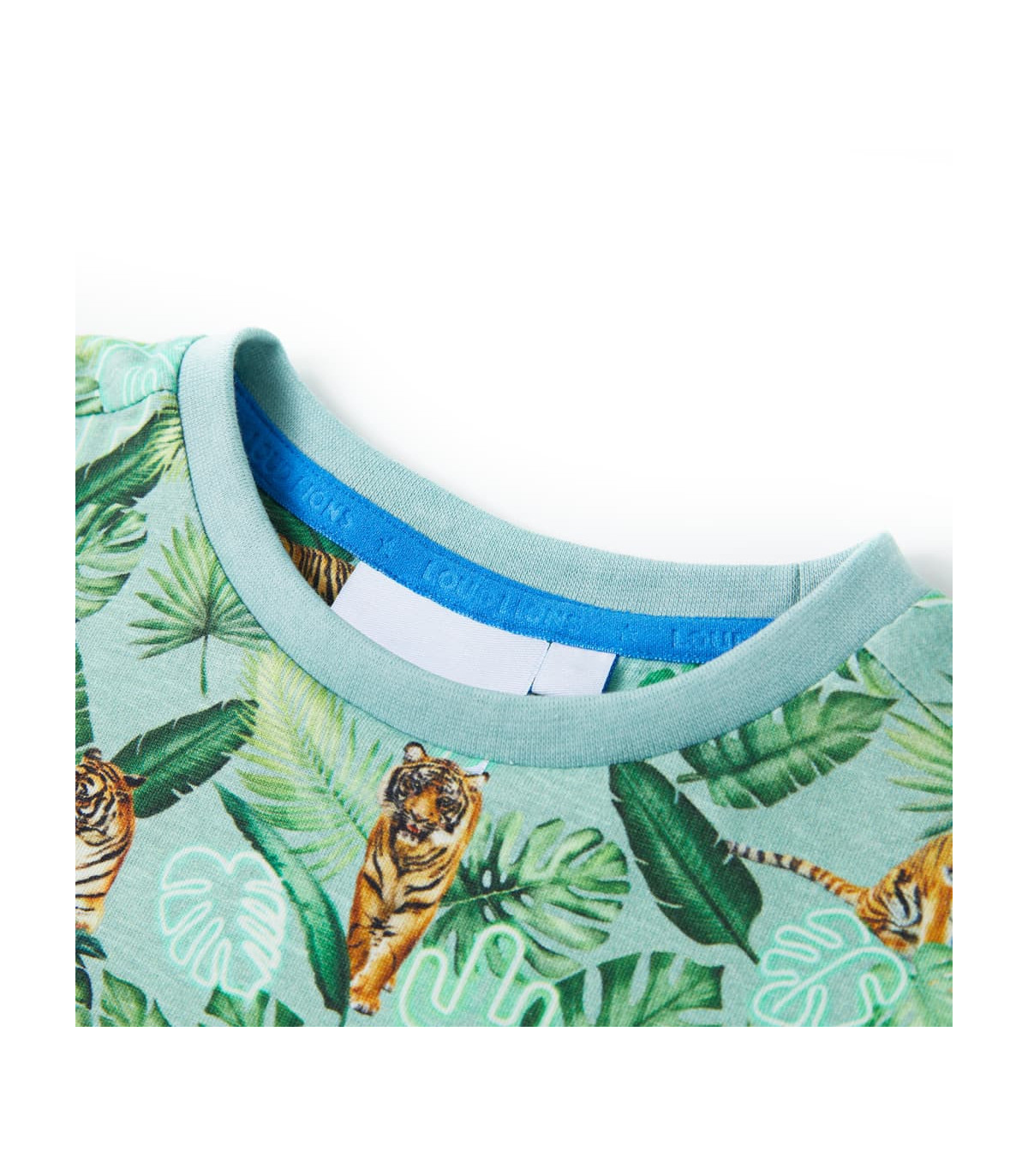 Our children's clothing line is all about affordable, high-quality, and durable everyday wear for kids aged 1.5 to 10. Our range includes jackets, sweaters, shirts, and many more, with a variety in style, size, and colour. Following the high-quality standard in the market, we are using high-grade materials and advanced manufacturing techniques. This kids' T-shirt has short sleeves, a round neckline, and a straight model. This T-shirt is printed with tigers and plants all over. The children's short sleeve T-shirt is made of 100% combed cotton that is treated with a silicon and enzyme wash for a soft and comfortable touch. Good to know: The size chart in the picture provides measurements for kids aged 1.5 to 10, covering the height, chest, waist, and hip. You can easily find the right fit for your child.