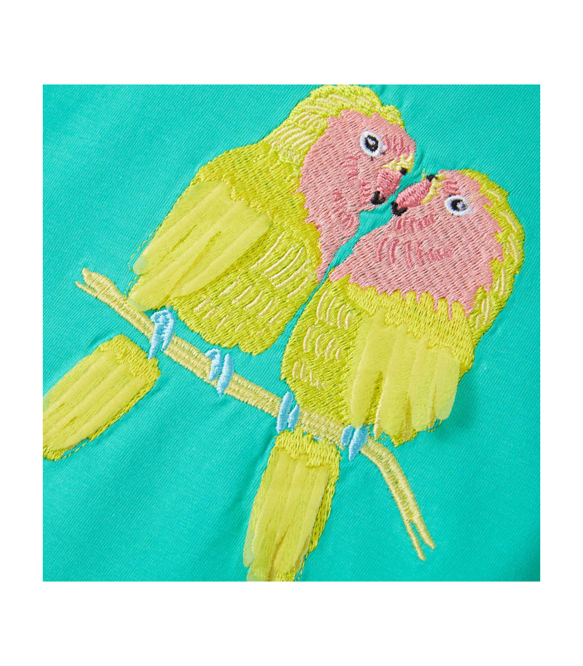 Our children’s clothing line is all about affordable, high-quality, and durable everyday wear for kids aged 1.5 to 10. Our range includes jackets, sweaters, shirts, and many more, with a variety in style, size, and colour. Following the high-quality standard in the market, we are using high-grade materials and advanced manufacturing techniques. This kids' T-shirt has short sleeves, a round neckline, and a straight model. The children's T-shirt features 2 cute parrots on the front. The T-shirt for kids is made of cotton and elastane for a soft and comfortable touch. Good to know: This size chart in the picture provides measurements for kids aged 1.5 to 10, covering the height, chest, waist, and hip. You can easily find the right fit for your child.