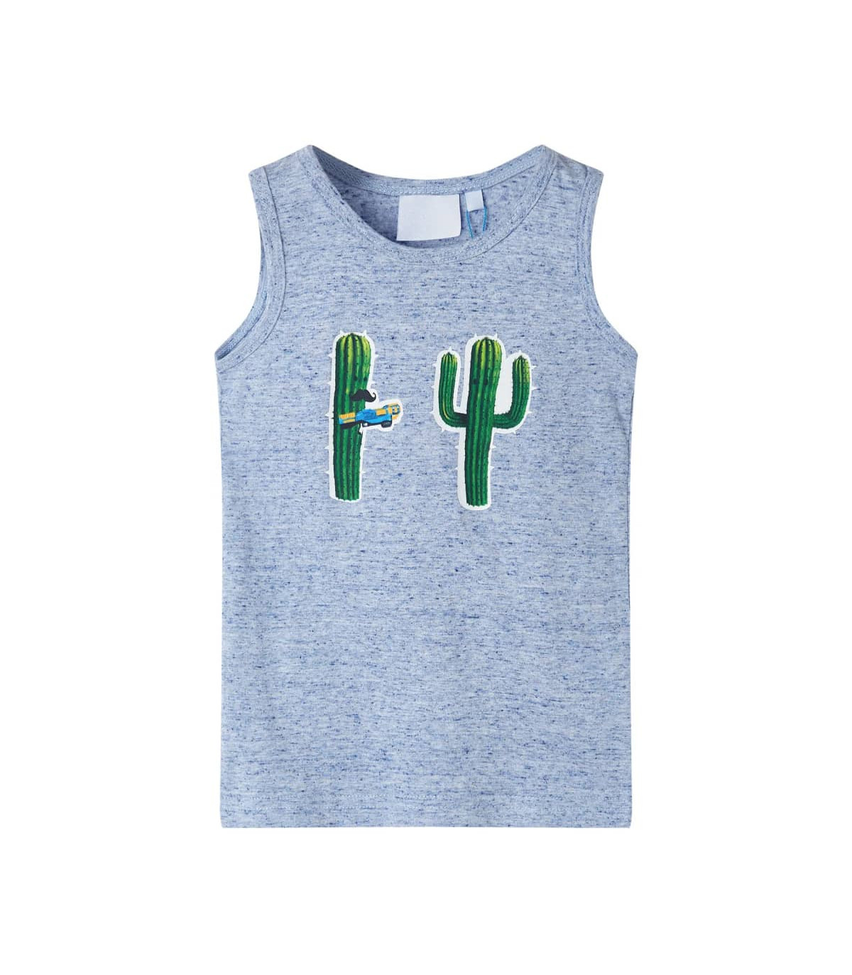Our children's clothing line is all about affordable, high-quality, and durable everyday wear for kids aged 1.5 to 10. Our range includes jackets, sweaters, shirts, and many more, with a variety in style, size, and colour. Following the high-quality standard in the market, we are using high-grade materials and advanced manufacturing techniques. This kids' tank top has a round neckline and a straight fit. This children's tank top is printed with cactuses. The tank top for kids is made of 80% cotton and 20% polyester for a soft and comfortable touch. Good to know: This size chart in the picture provides measurements for kids aged 1.5 to 10, covering the height, chest, waist, and hip. You can easily find the right fit for your child.