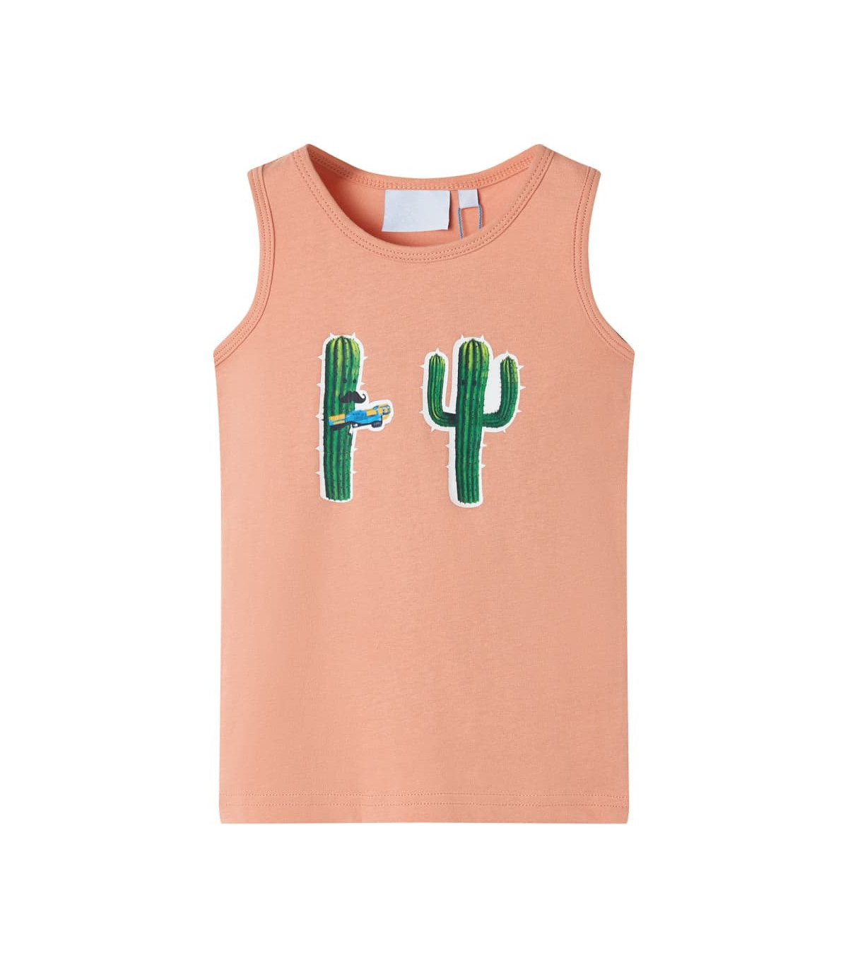 Our children's clothing line is all about affordable, high-quality, and durable everyday wear for kids aged 1.5 to 10. Our range includes jackets, sweaters, shirts, and many more, with a variety in style, size, and colour. Following the high-quality standard in the market, we are using high-grade materials and advanced manufacturing techniques. This kids' tank top has a round neckline and a straight fit. This children's tank top is printed with cactuses. The tank top for kids is made of 80% cotton and 20% polyester for a soft and comfortable touch. Good to know: This size chart in the picture provides measurements for kids aged 1.5 to 10, covering the height, chest, waist, and hip. You can easily find the right fit for your child.