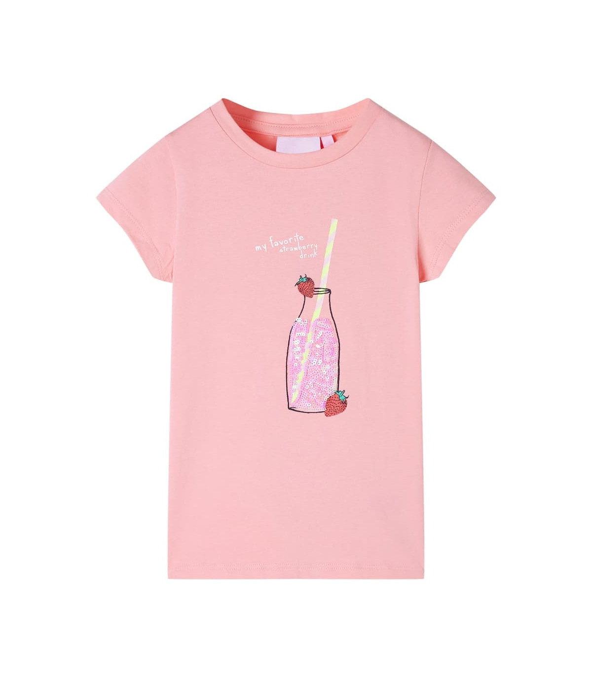Our children’s clothing line is all about affordable, high-quality, and durable everyday wear for kids aged 1.5 to 10. Our range includes jackets, sweaters, shirts, and many more, with a variety in style, size, and colour. Following the high-quality standard in the market, we are using high-grade materials and advanced manufacturing techniques. This kids' T-shirt has short sleeves, a round neckline, and a straight model. The children's T-shirt features a bottle of strawberry drink on the front. The T-shirt for kids is made of cotton and elastane for a soft and comfortable touch. Good to know: This size chart in the picture provides measurements for kids aged 1.5 to 10, covering the height, chest, waist, and hip. You can easily find the right fit for your child.