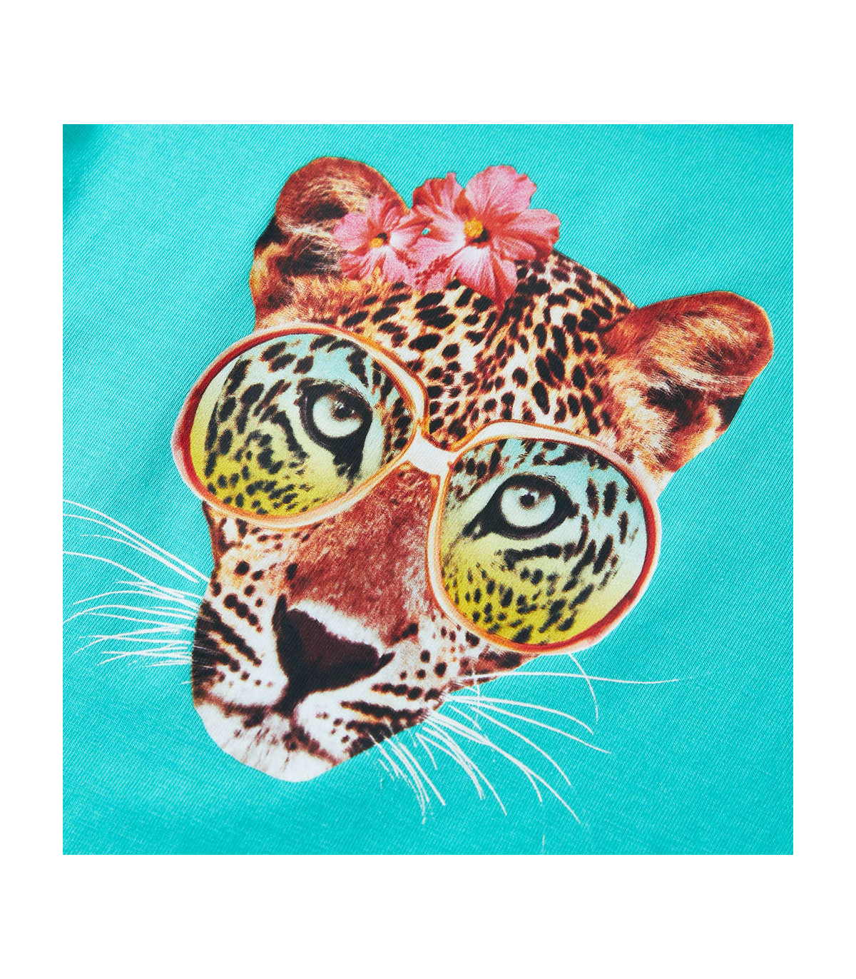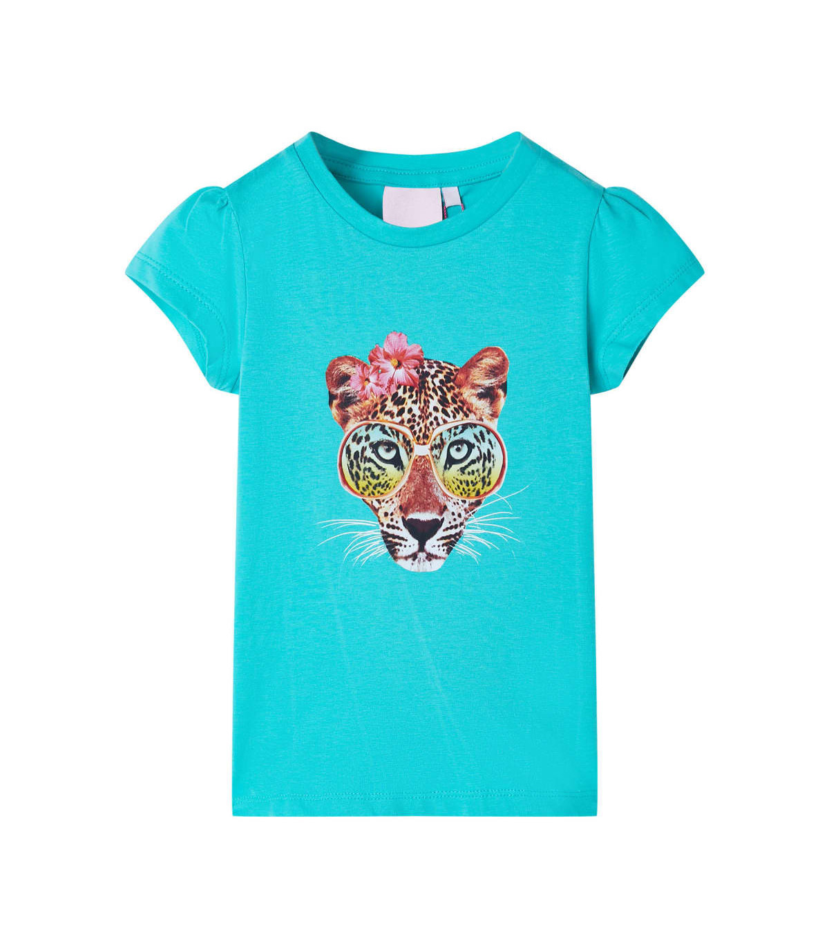 Our children's clothing line is all about affordable, high-quality, and durable everyday wear for kids aged 1.5 to 10. Our range includes jackets, sweaters, shirts, and many more, with a variety in style, size, and colour. Following the high-quality standard in the market, we are using high-grade materials and advanced manufacturing techniques. This kids' T-shirt has short sleeves, a round neckline, and a straight model. This T-shirt features a leopard head with fashionable glasses and flowers on the chest. The children's short sleeve T-shirt is made of 95% cotton and 5% elastane for comfort and breathability. Good to know: The size chart in the picture provides measurements for kids aged 1.5 to 10, covering the height, chest, waist, and hip. You can easily find the right fit for your child.
