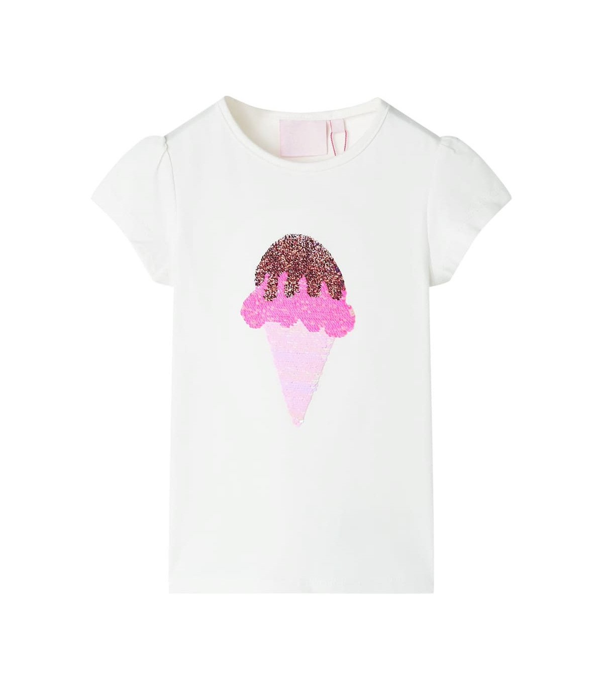 Our children's clothing line is all about affordable, high-quality, and durable everyday wear for kids aged 1.5 to 10. Our range includes jackets, sweaters, shirts, and many more, with a variety in style, size, and colour. Following the high-quality standard in the market, we are using high-grade materials and advanced manufacturing techniques. This kids' T-shirt has short sleeves, a round neckline, and a straight model. This T-shirt features a reversible sequin ice cream, bringing a touch of magic to the front. The children's short sleeve T-shirt is made from soft material with cotton, polyester and elastane for comfort and breathability. Good to know: The size chart in the picture provides measurements for kids aged 1.5 to 10, covering the height, chest, waist, and hip. You can easily find the right fit for your child.