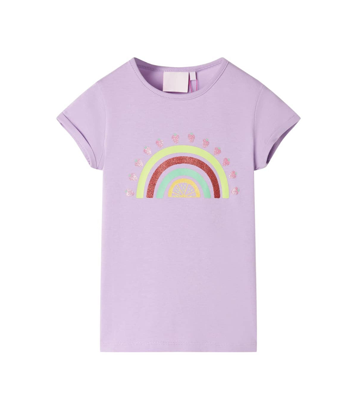 Our children's clothing line is all about affordable, high-quality, and durable everyday wear for kids aged 1.5 to 10. Our range includes jackets, sweaters, shirts, and many more, with a variety in style, size, and colour. Following the high-quality standard in the market, we are using high-grade materials and advanced manufacturing techniques. This kids' T-shirt has short sleeves with sewn-in turn-ups, a round neckline, and a straight model. This T-shirt is printed with a sparkling rainbow pattern with strawberries dotted around the outer edge of the rainbow. The children's short sleeve T-shirt is made of 95% cotton and 5% elastane for comfort and breathability. Good to know: The size chart in the picture provides measurements for kids aged 1.5 to 10, covering the height, chest, waist, and hip. You can easily find the right fit for your child.