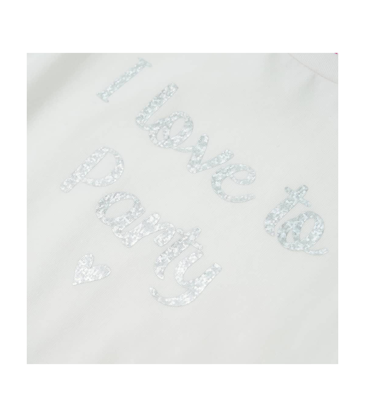 Our children’s clothing line is all about affordable, high-quality, and durable everyday wear for kids aged 1.5 to 10. Our range includes jackets, sweaters, shirts, and many more, with a variety in style, size, and colour. Following the high-quality standard in the market, we are using high-grade materials and advanced manufacturing techniques. This kids' T-shirt has ruffle sleeves, a round neckline, and a straight model. The glitter print makes the children's T-shirt look elegant and beautiful. The children's short sleeve T-shirt is made of 95% cotton and 5% elastane for a soft and comfortable touch. Good to know: The size chart in the picture provides measurements for kids aged 1.5 to 10, covering the height, chest, waist, and hip. You can easily find the right fit for your child.