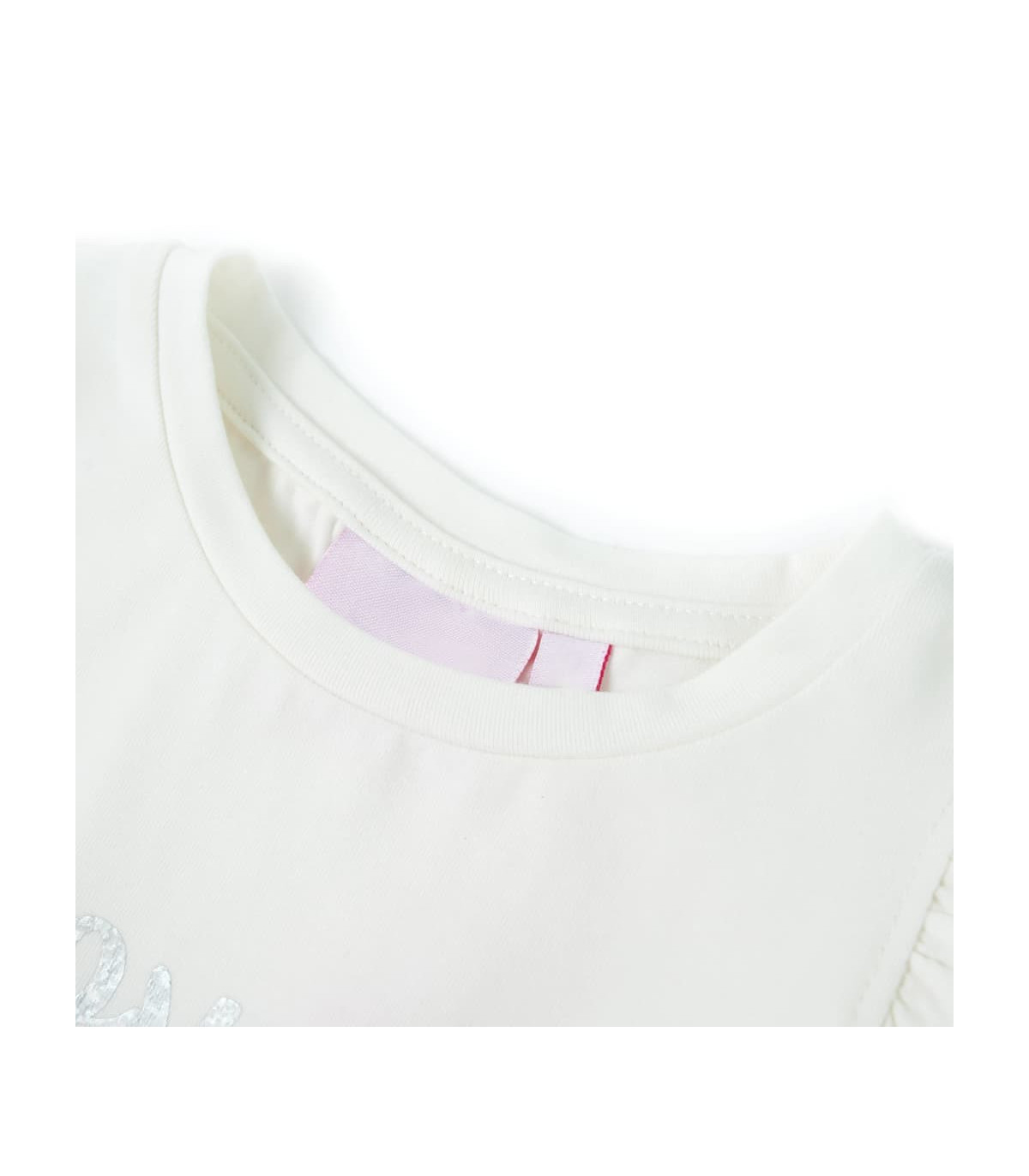 Our children’s clothing line is all about affordable, high-quality, and durable everyday wear for kids aged 1.5 to 10. Our range includes jackets, sweaters, shirts, and many more, with a variety in style, size, and colour. Following the high-quality standard in the market, we are using high-grade materials and advanced manufacturing techniques. This kids' T-shirt has ruffle sleeves, a round neckline, and a straight model. The glitter print makes the children's T-shirt look elegant and beautiful. The children's short sleeve T-shirt is made of 95% cotton and 5% elastane for a soft and comfortable touch. Good to know: The size chart in the picture provides measurements for kids aged 1.5 to 10, covering the height, chest, waist, and hip. You can easily find the right fit for your child.