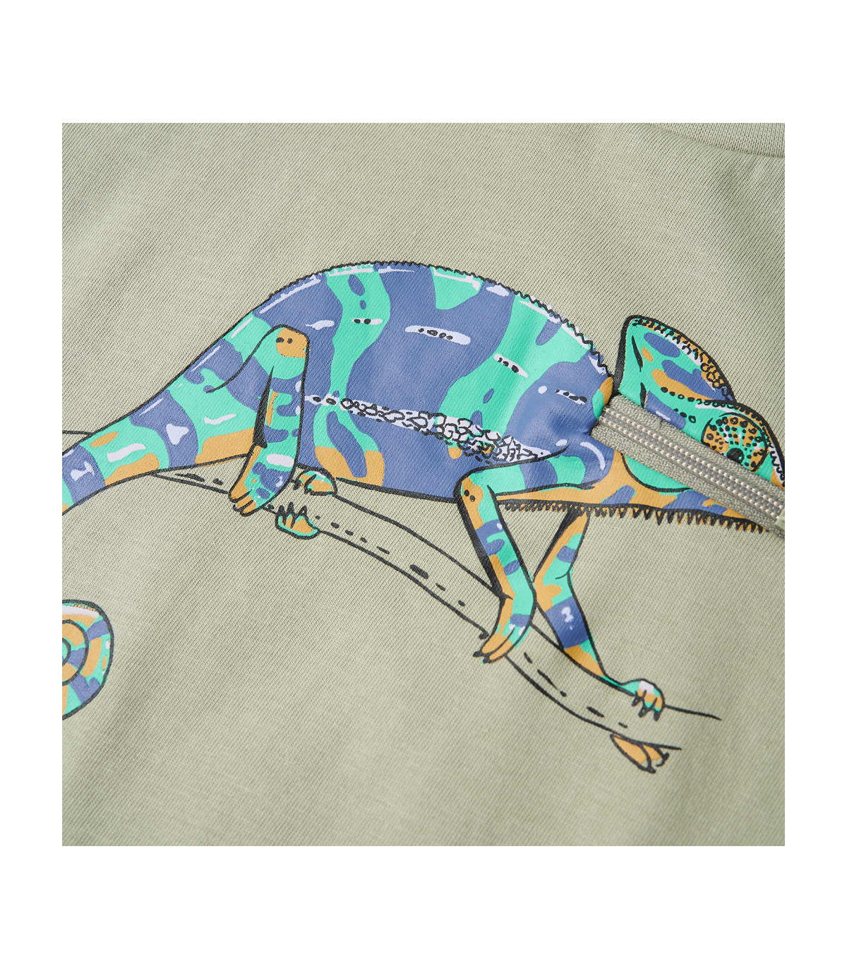 Our children’s clothing line is all about affordable, high-quality, and durable everyday wear for kids aged 1.5 to 10. Our range includes jackets, sweaters, shirts, and many more, with a variety in style, size, and colour. Following the high-quality standard in the market, we are using high-grade materials and advanced manufacturing techniques. This kids' T-shirt has short sleeves, a ribbed round neckline, and a straight model. This children's T-shirt features a chameleon with a zipper as a mouth. Open the zipper and there is a tongue in it. The children's short sleeve T-shirt is made of 100% cotton for comfort and breathability. Good to know: The size chart in the picture provides measurements for kids aged 1.5 to 10, covering the height, chest, waist, and hip. You can easily find the right fit for your child.