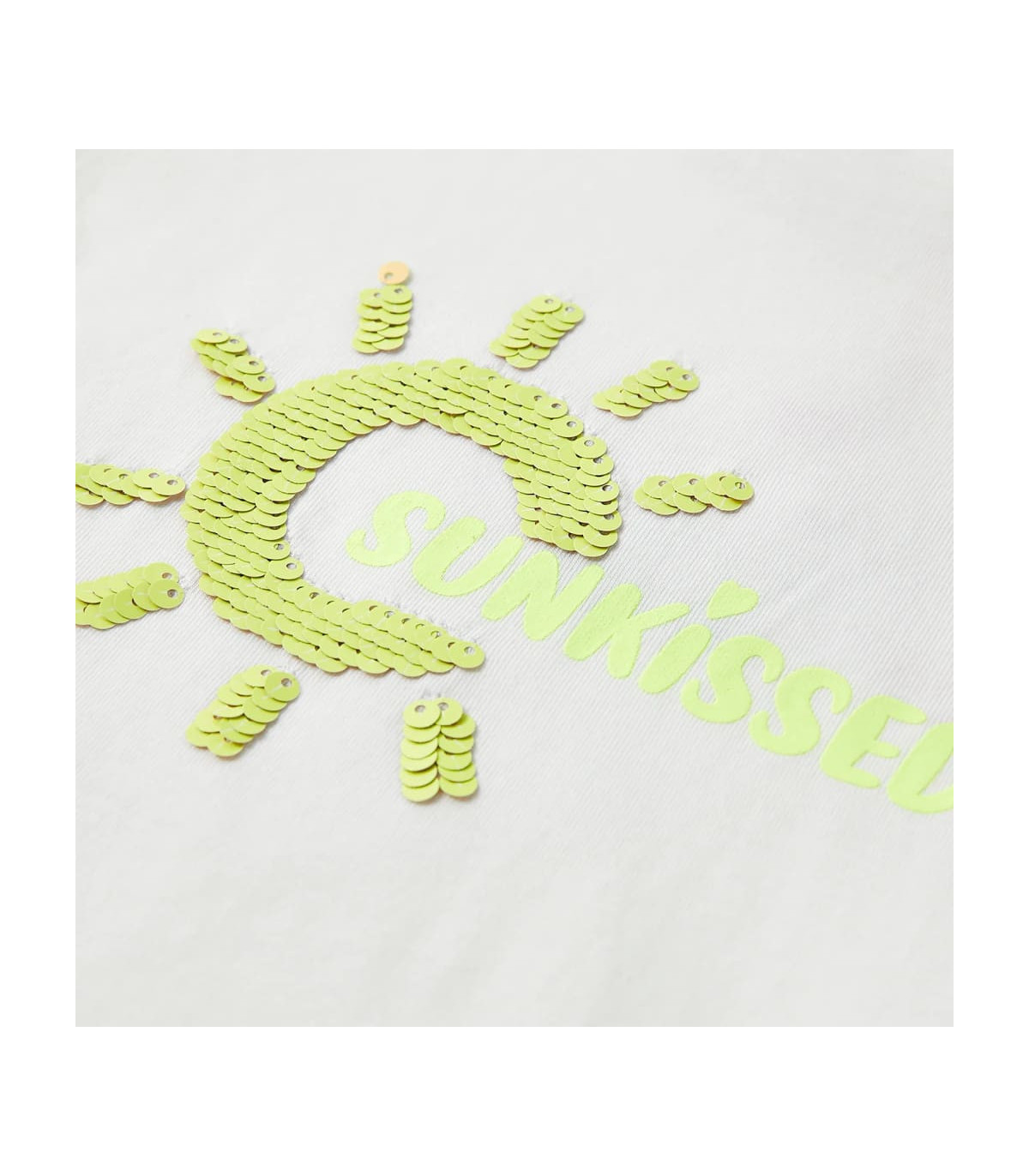 Our children’s clothing line is all about affordable, high-quality, and durable everyday wear for kids aged 1.5 to 10. Our range includes jackets, sweaters, shirts, and many more, with a variety in style, size, and colour. Following the high-quality standard in the market, we are using high-grade materials and advanced manufacturing techniques. This kids' T-shirt has short sleeves, a round neckline, and a straight model. The children's T-shirt is designed with cute patterns on the front. The pattern consists of the sun and the word “SUNKISSED”. The T-shirt for kids is made of 100% cotton for a soft and comfortable touch. Good to know: This size chart in the picture provides measurements for kids aged 1.5 to 10, covering the height, chest, waist, and hip. You can easily find the right fit for your child.