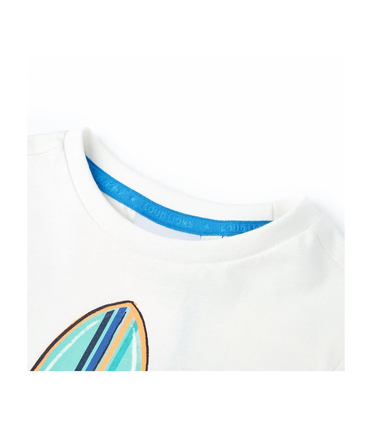 Our children's clothing line is all about affordable, high-quality, and durable everyday wear for kids aged 1.5 to 10. Our range includes jackets, sweaters, shirts, and many more, with a variety in style, size, and colour. Following the high-quality standard in the market, we are using high-grade materials and advanced manufacturing techniques. This kids' T-shirt has short sleeves, a round neckline, and a straight model. The children's T-shirt features a colorful surfboard on the front. The T-shirt for kids is made of 100% cotton for a soft and comfortable touch. Good to know: This size chart in the picture provides measurements for kids aged 1.5 to 10, covering the height, chest, waist, and hip. You can easily find the right fit for your child.