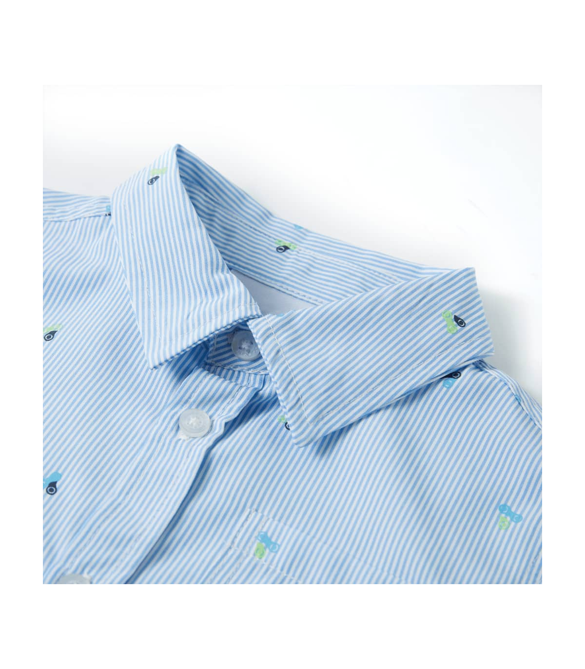 Our children's clothing line is all about affordable, high-quality, and durable everyday wear for kids aged 1.5 to 10. Our range includes jackets, sweaters, shirts, and many more, with a variety in style, size, and colour. Following the high-quality standard in the market, we are using high-grade materials and advanced manufacturing techniques. This kids' shirt has long sleeves, a pointed collar, a single chest pocket and closes with a row of buttons. The shirt for kids is made of 100% cotton for comfort and breathability. Good to know: This size chart in the picture provides measurements for kids aged 1.5 to 10, covering the height, chest, waist, and hip. You can easily find the right fit for your child.