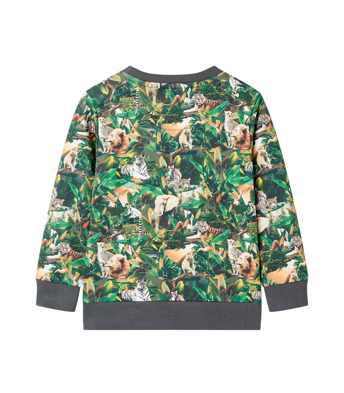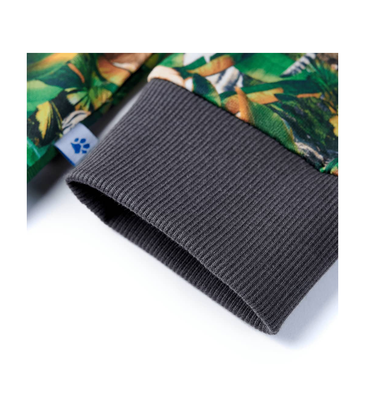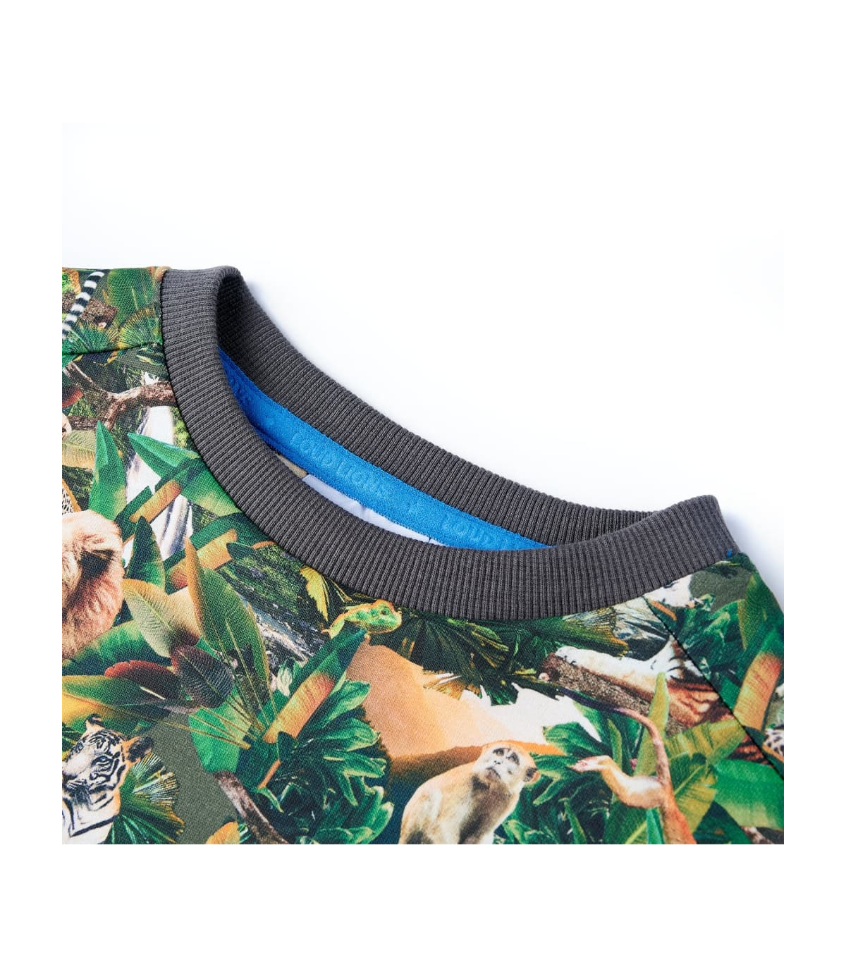 Our children's clothing line is all about affordable, high-quality, and durable everyday wear for kids aged 1.5 to 10. Our range includes jackets, sweaters, shirts, and many more, with a variety in style, size, and colour. Following the high-quality standard in the market, we are using high-grade materials and advanced manufacturing techniques. This kids' sweatshirt has long sleeves, a round neck, and rib-knit edges at the cuffs, neckline, and bottom. The children's sweatshirt is printed with animals and plants all over. The sweatshirt for kids is made from soft material that includes 95% cotton and 5% elastane for comfort and breathability. Good to know: This size chart in the picture provides measurements for kids aged 1.5 to 10, covering the height, chest, waist, and hip. You can easily find the right fit for your child.